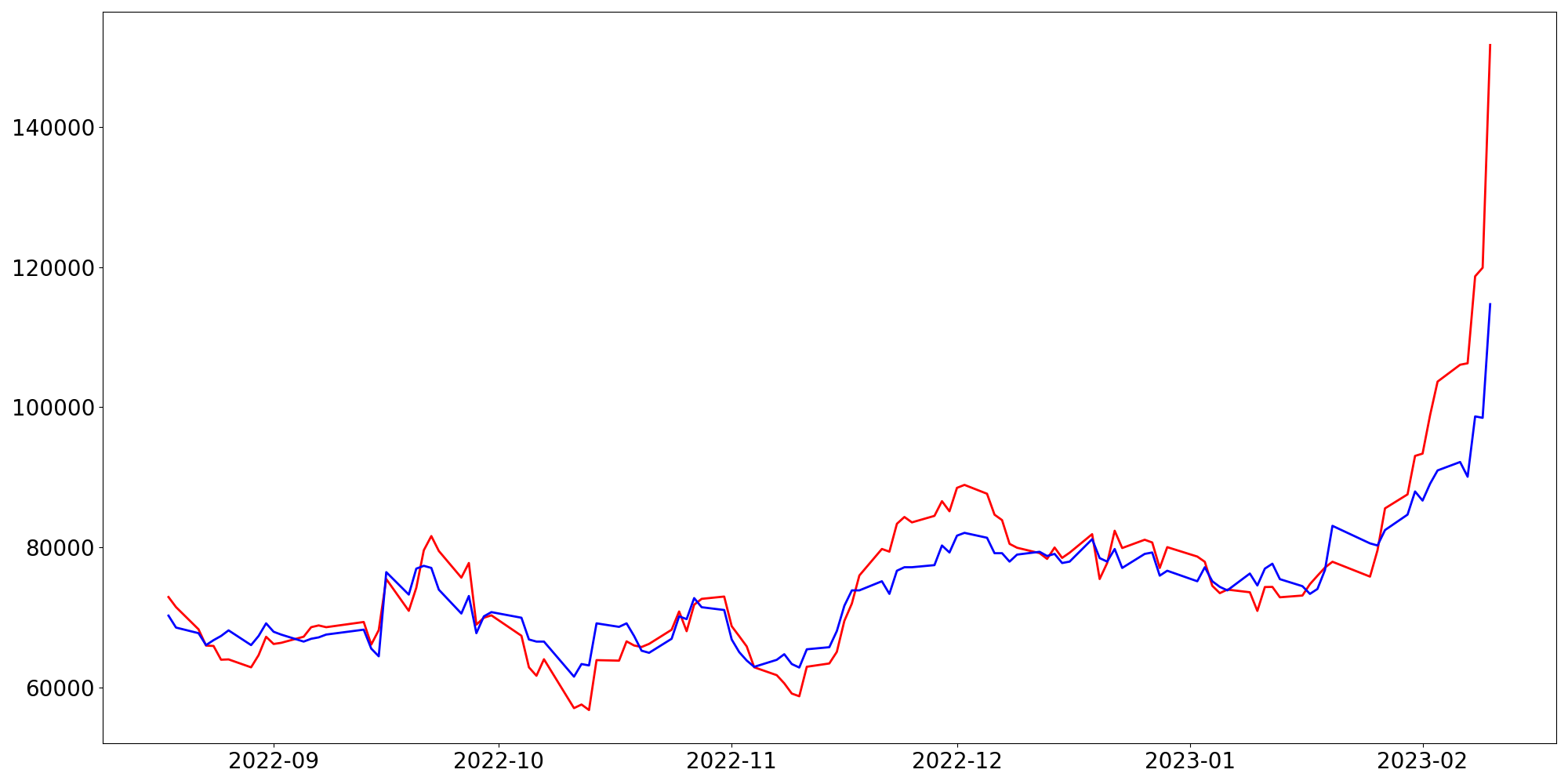 [ - : 실제값(종가) / - : 예측값(종가) ]