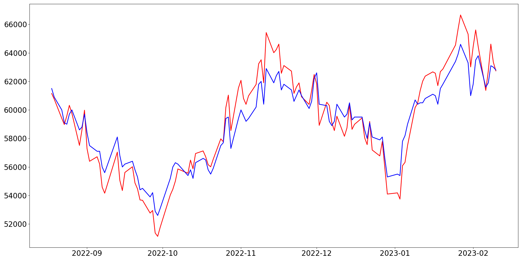 [ - : 실제값(종가) / - : 예측값(종가) ]