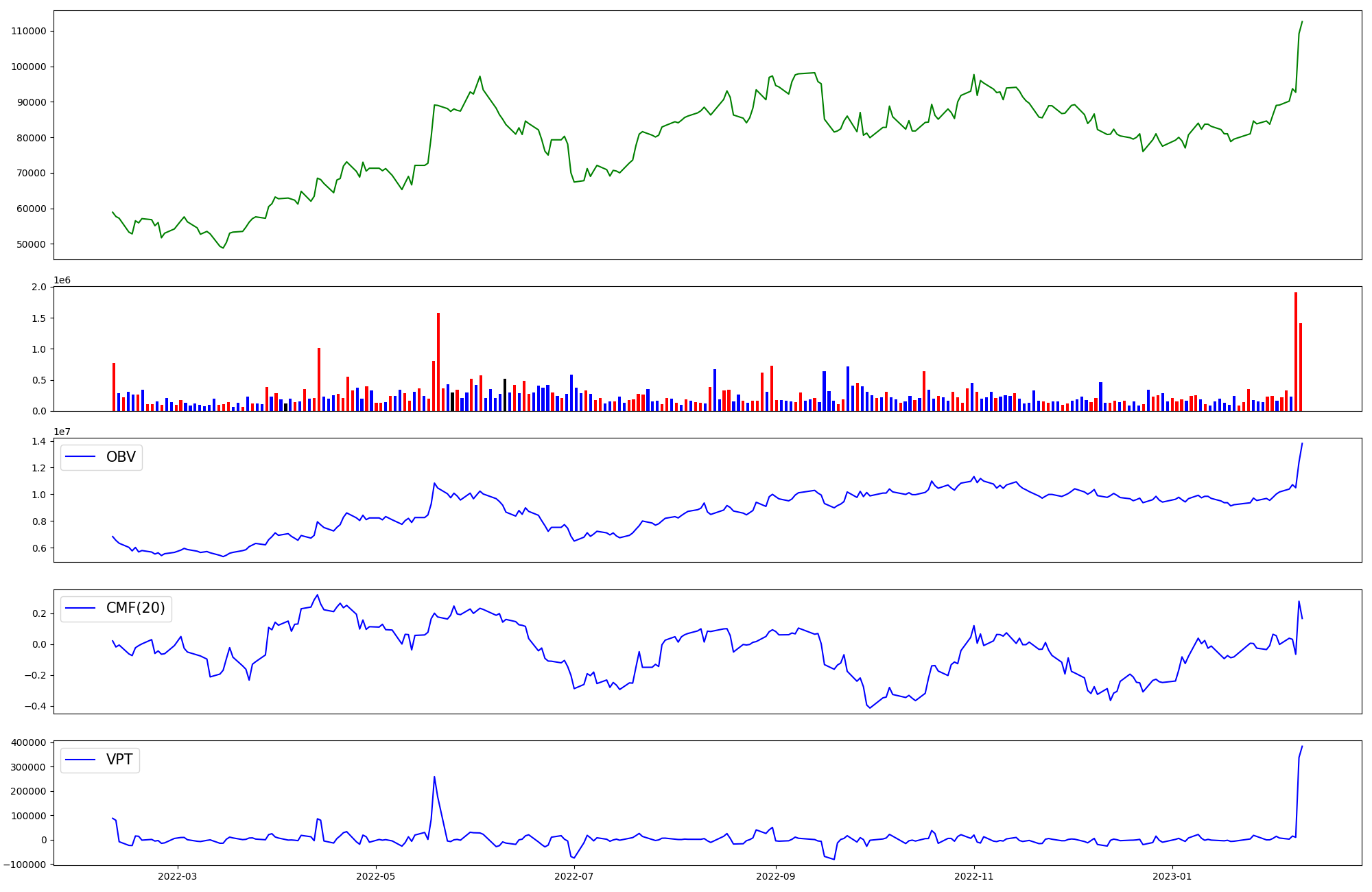 | OBV | CMF | VPT | |