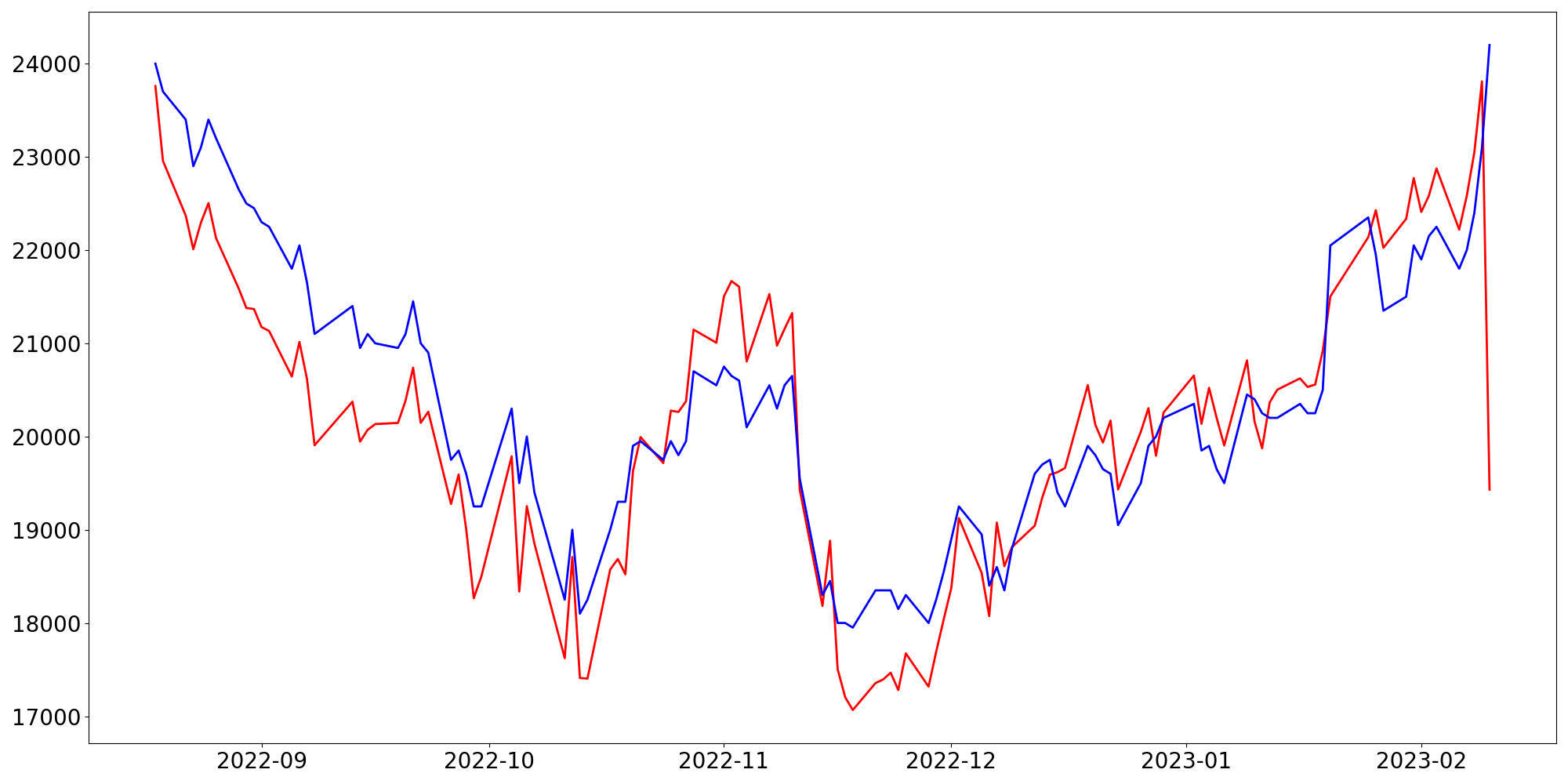 [ - : 실제값(종가) / - : 예측값(종가) ]