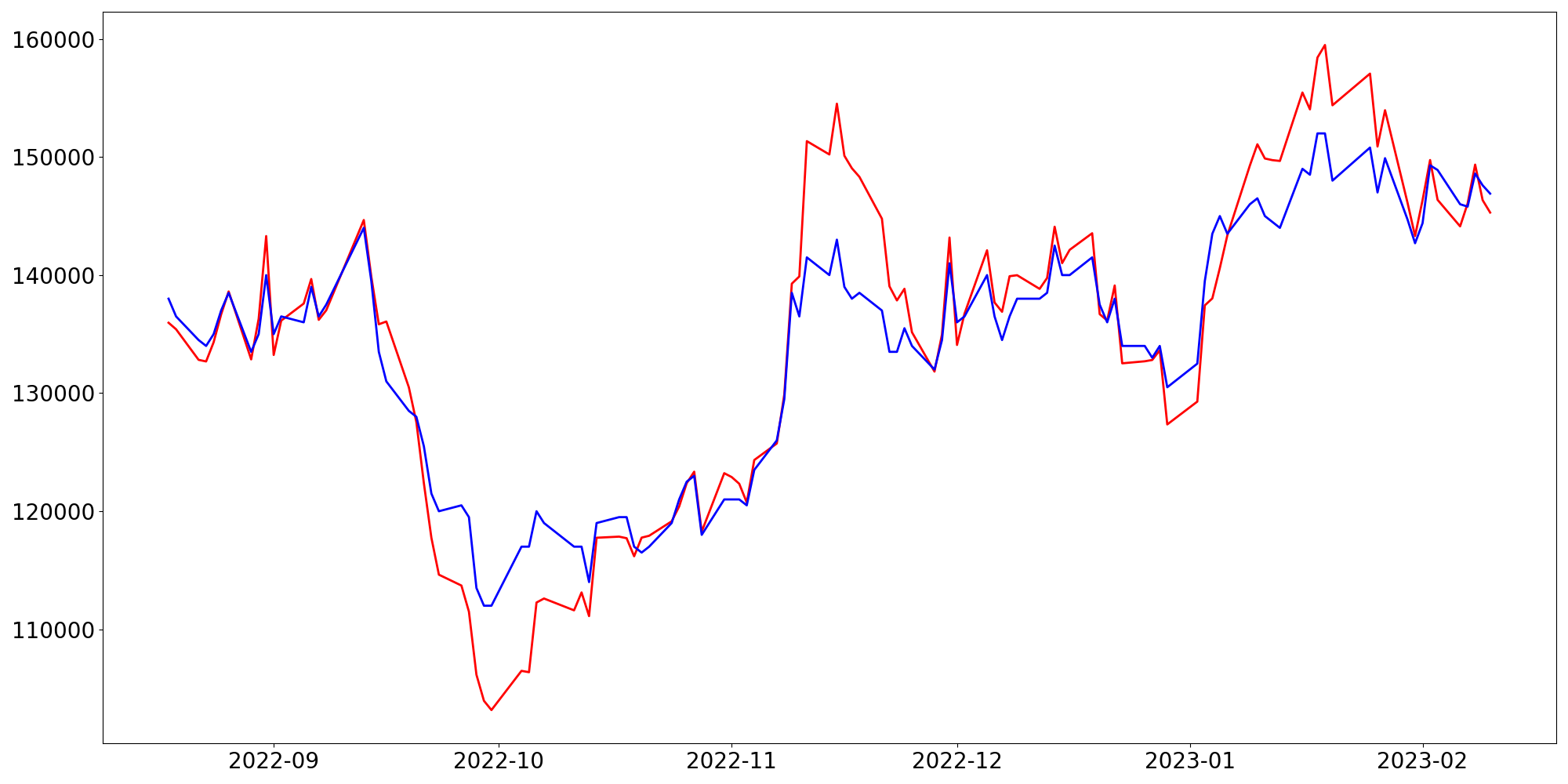[ - : 실제값(종가) / - : 예측값(종가) ]
