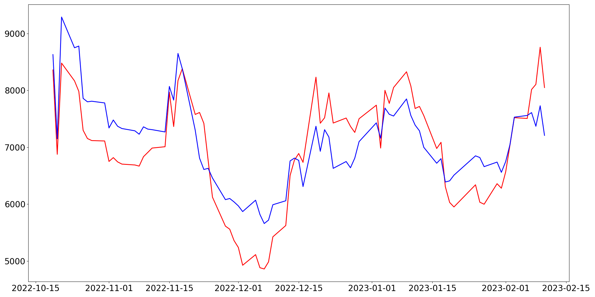 [ - : 실제값(종가) / - : 예측값(종가) ]
