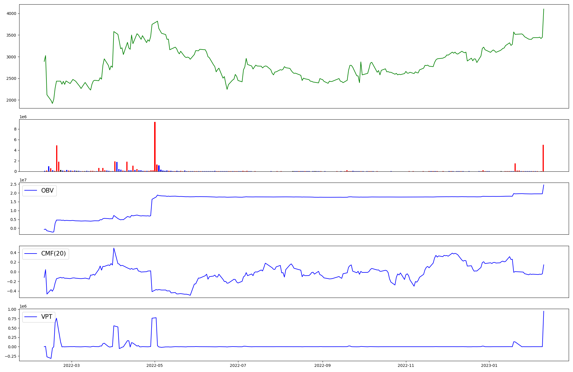 | OBV | CMF | VPT | |