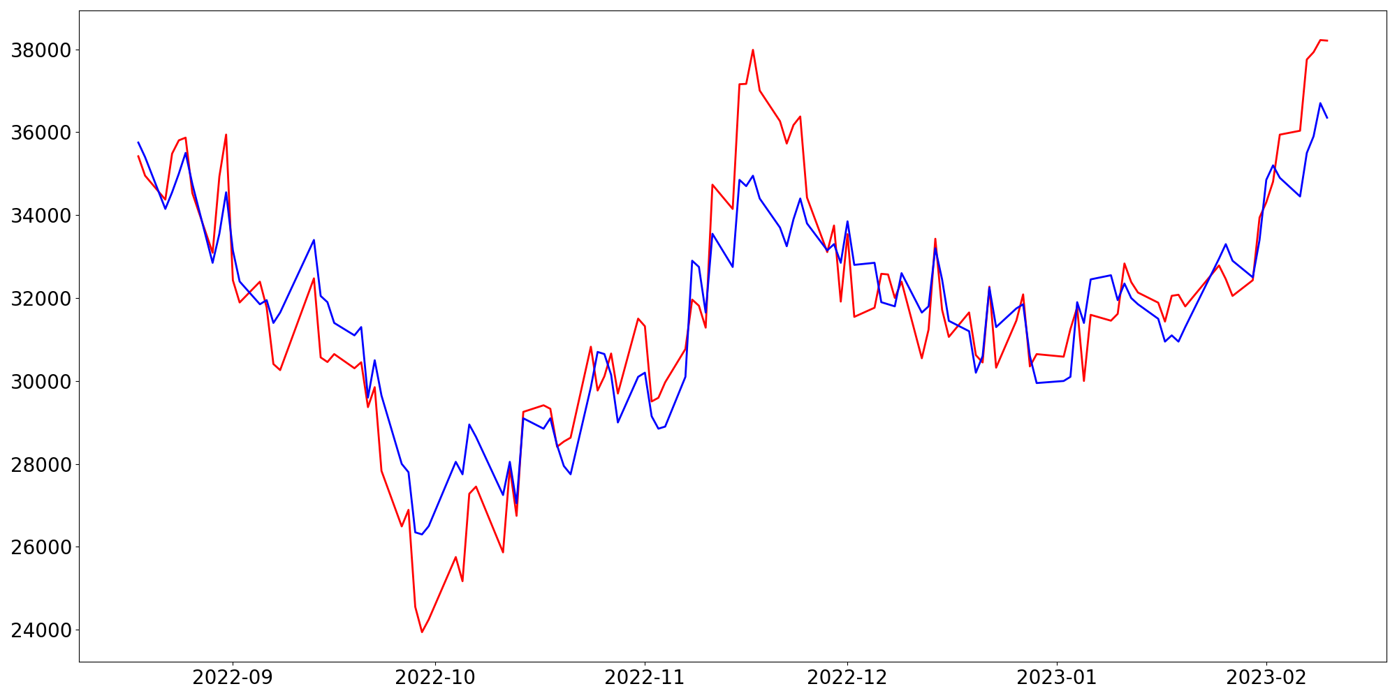 [ - : 실제값(종가) / - : 예측값(종가) ]