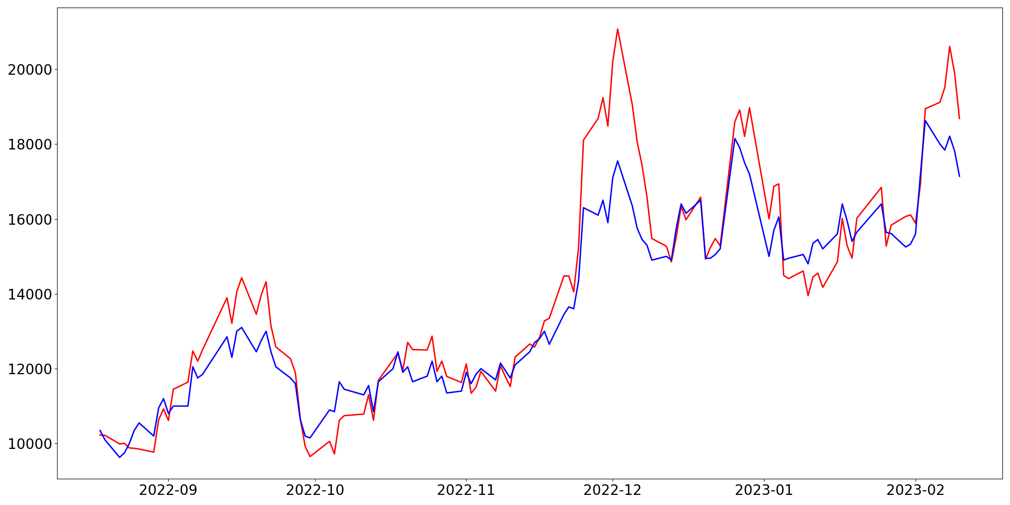 [ - : 실제값(종가) / - : 예측값(종가) ]