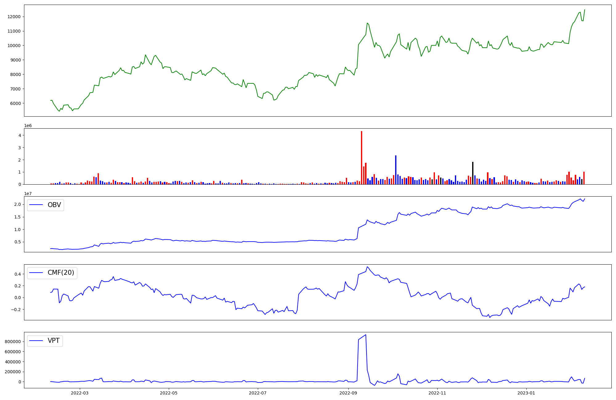 | OBV | CMF | VPT | |