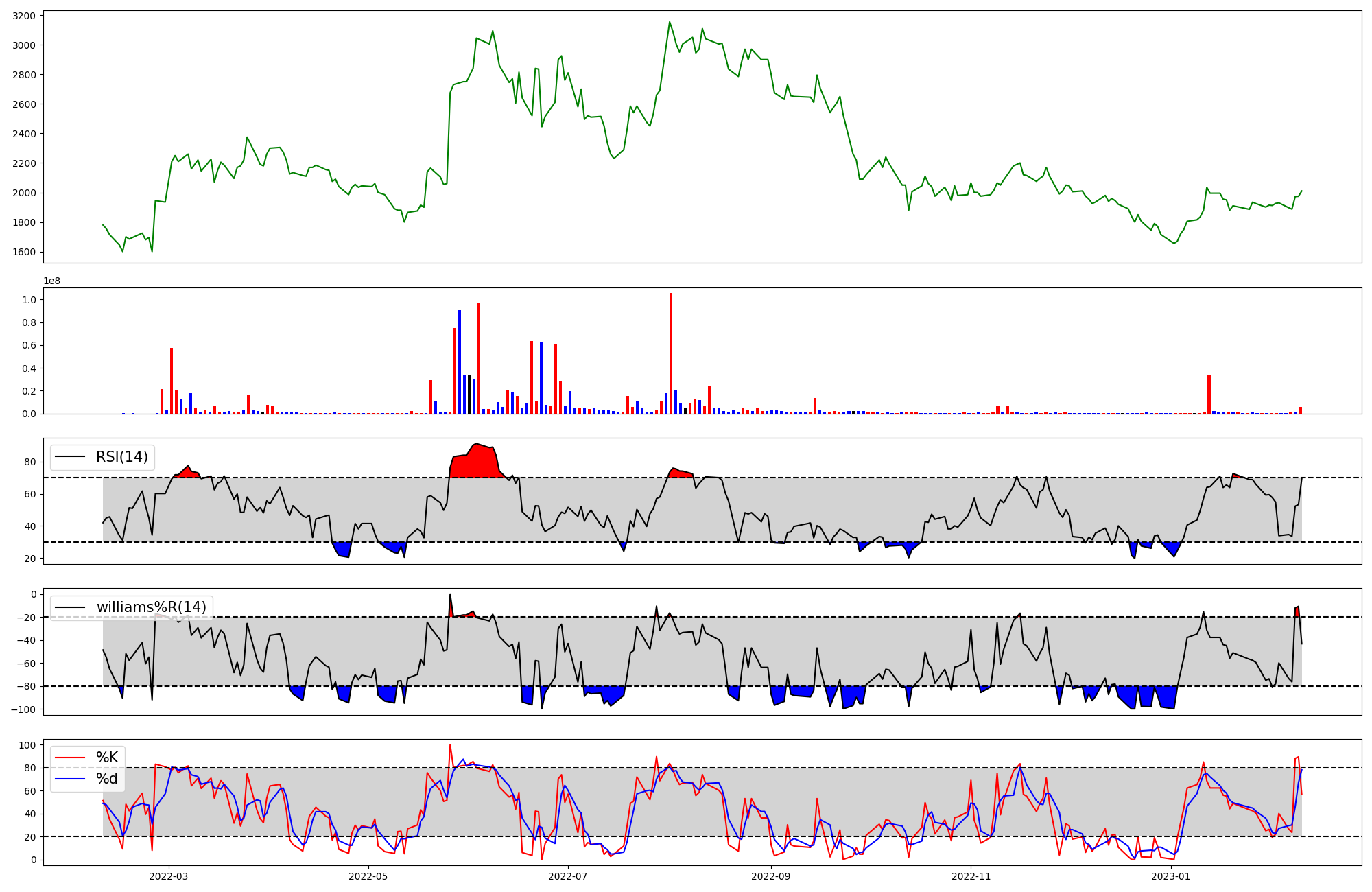 | RSI | Williams %R | stochastic(%K) | |