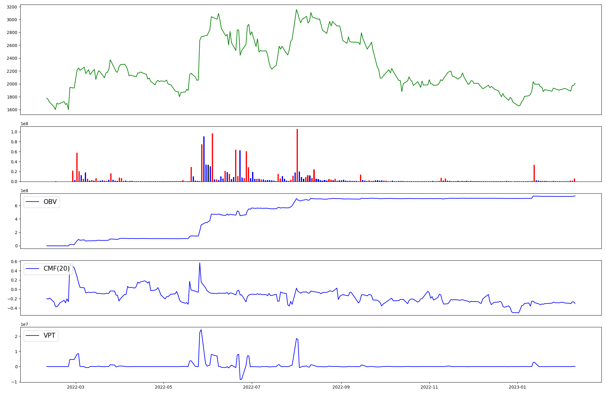 | OBV | CMF | VPT | |