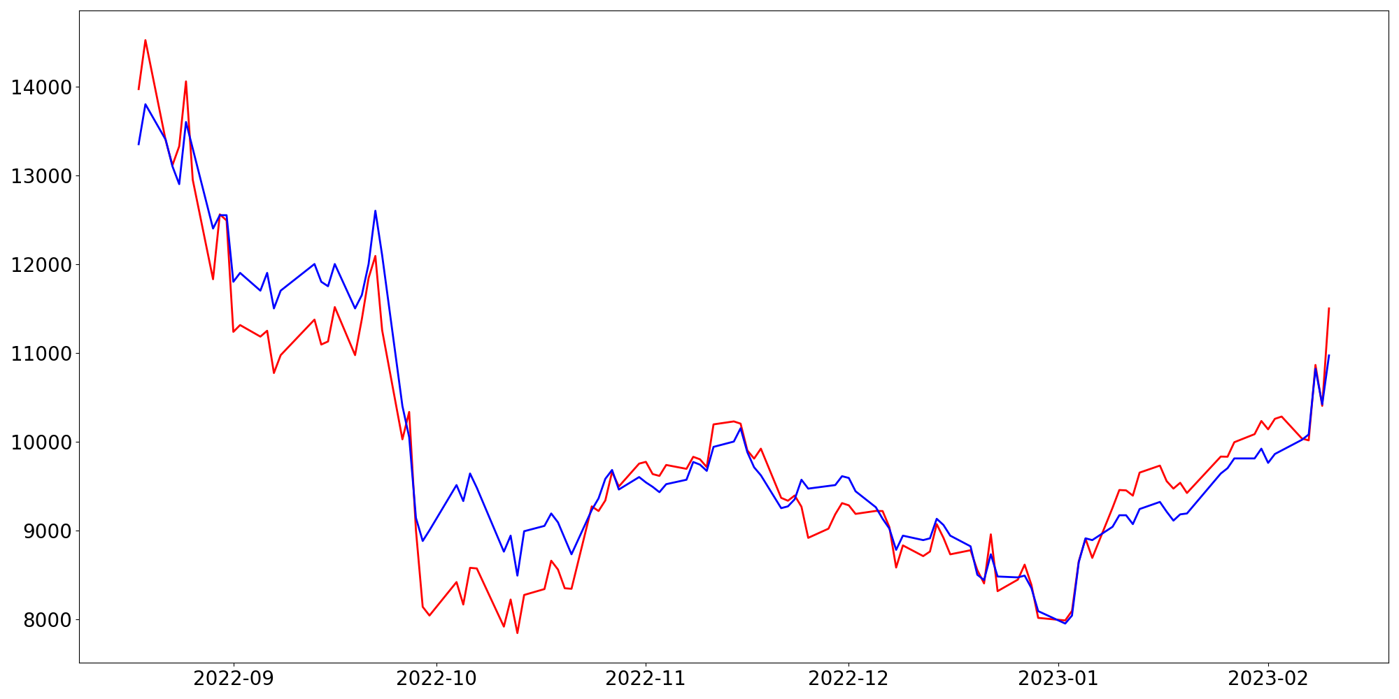[ - : 실제값(종가) / - : 예측값(종가) ]