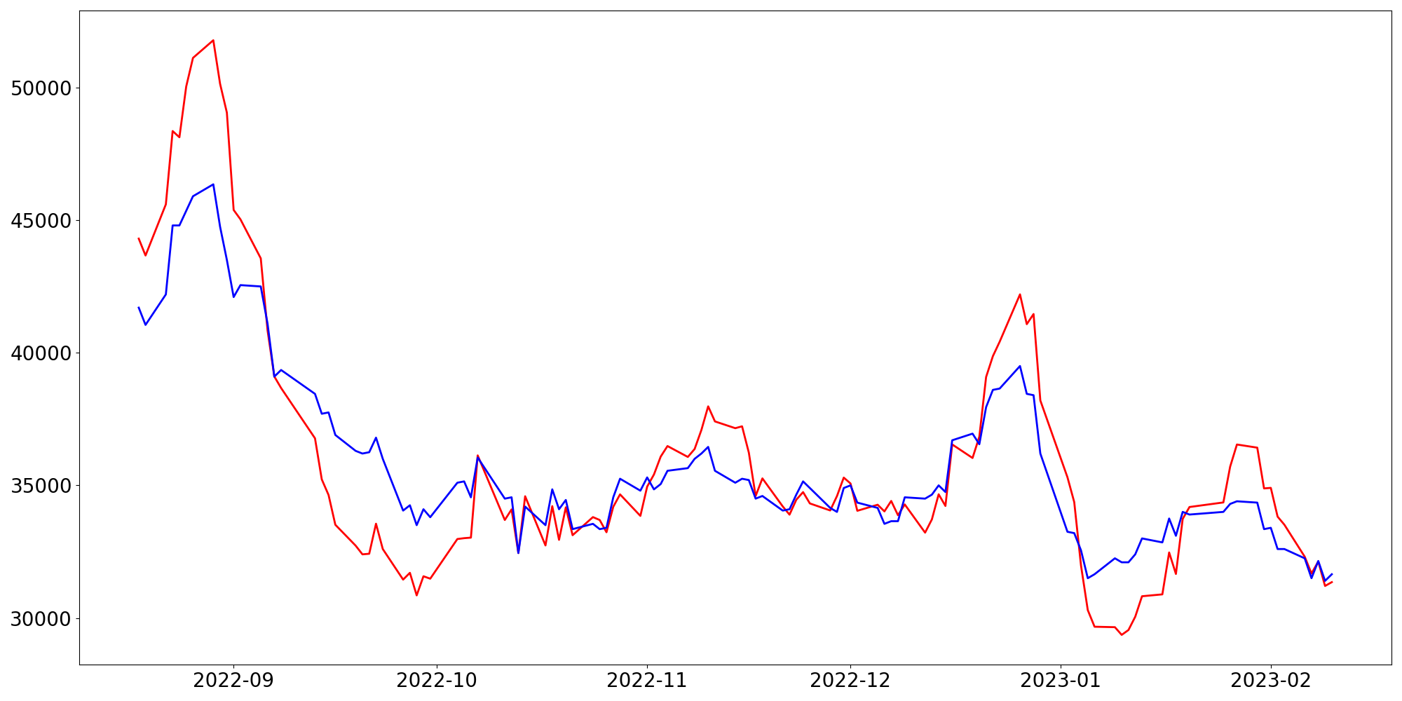 [ - : 실제값(종가) / - : 예측값(종가) ]