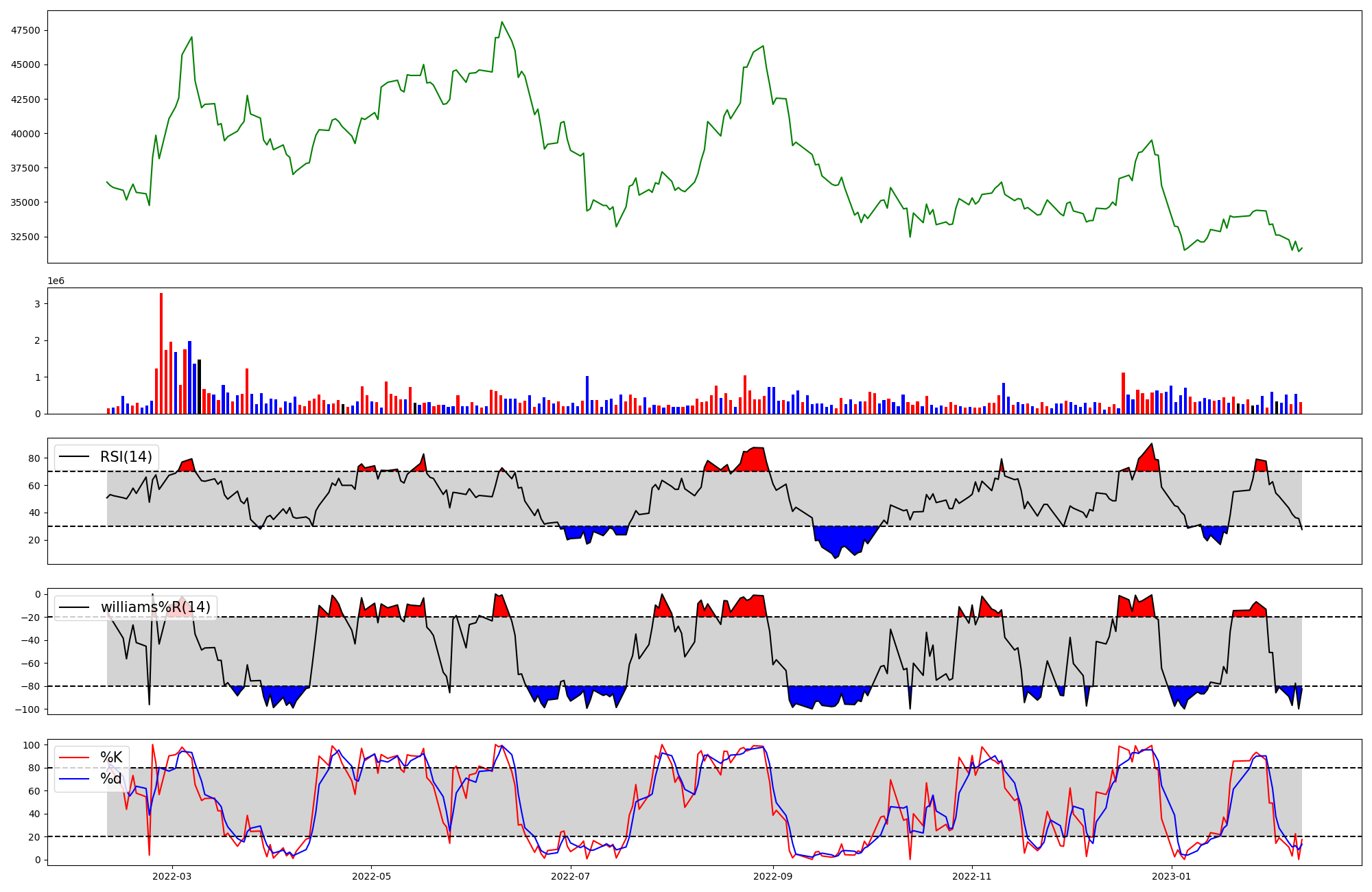 | RSI | Williams %R | stochastic(%K) | |