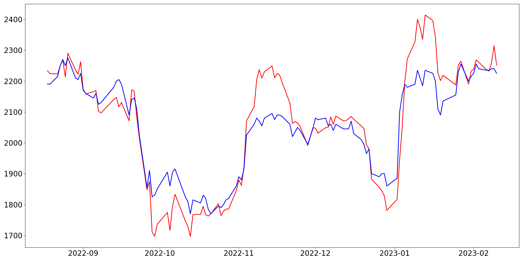 [ - : 실제값(종가) / - : 예측값(종가) ]