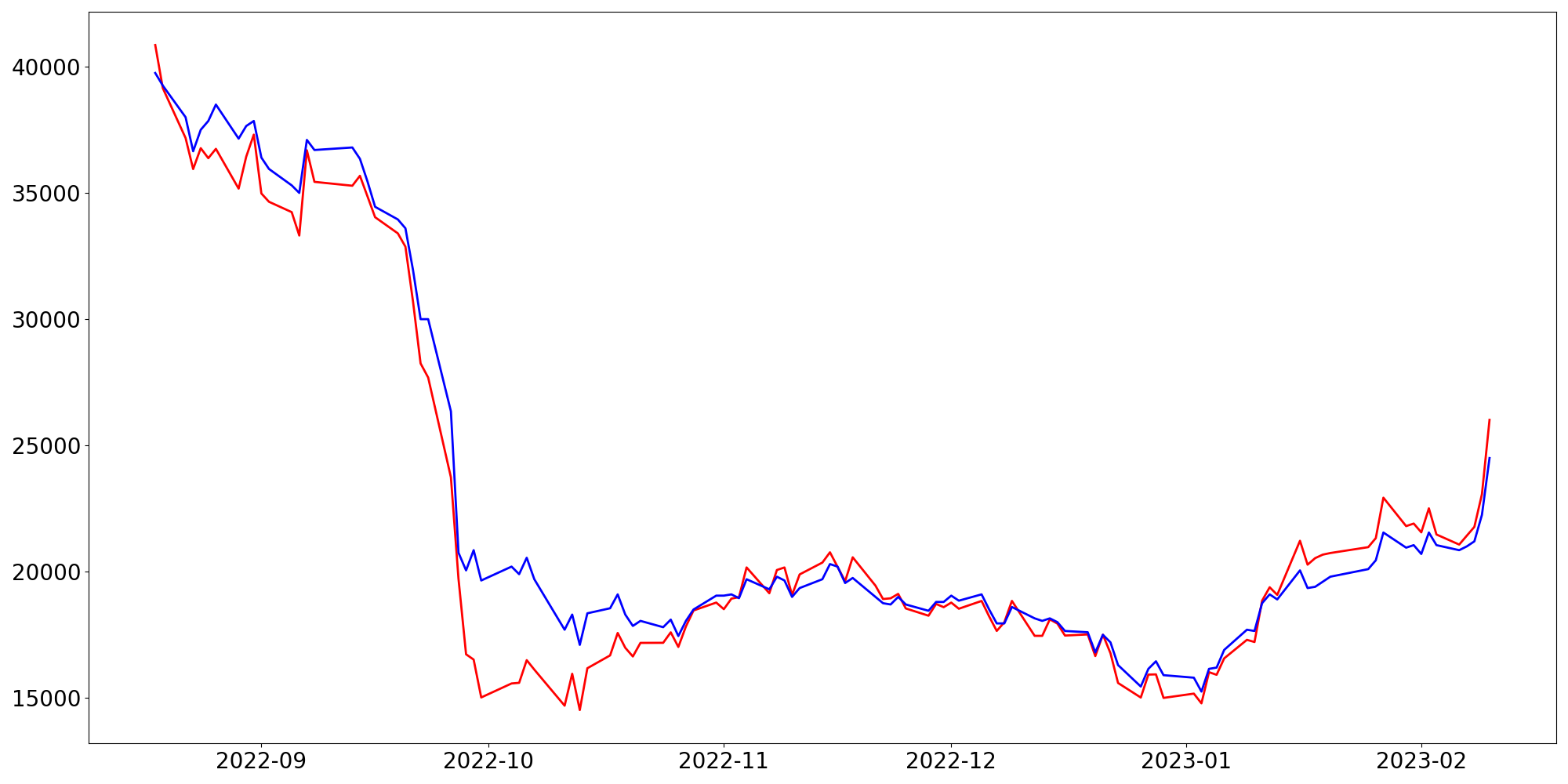 [ - : 실제값(종가) / - : 예측값(종가) ]