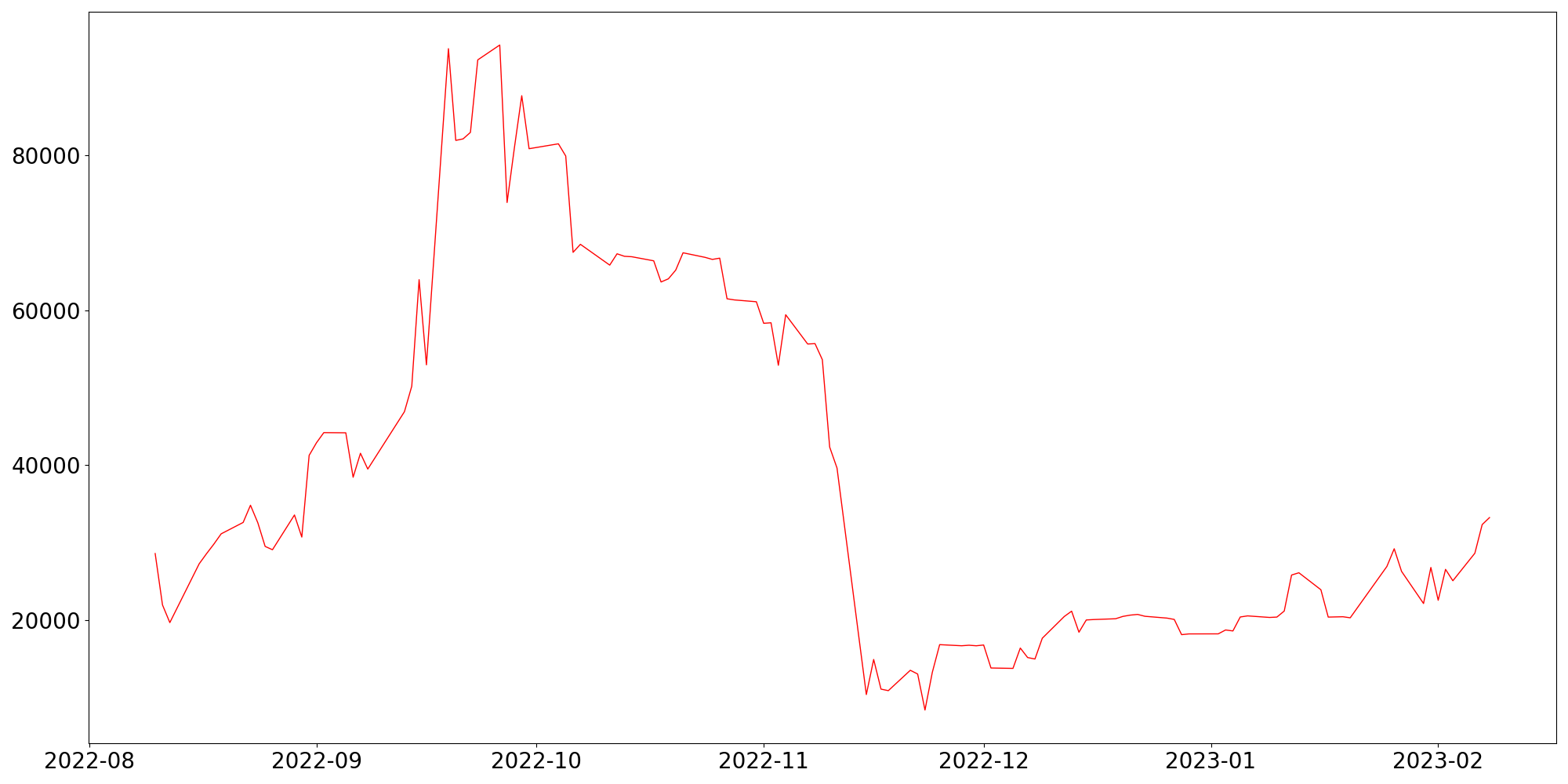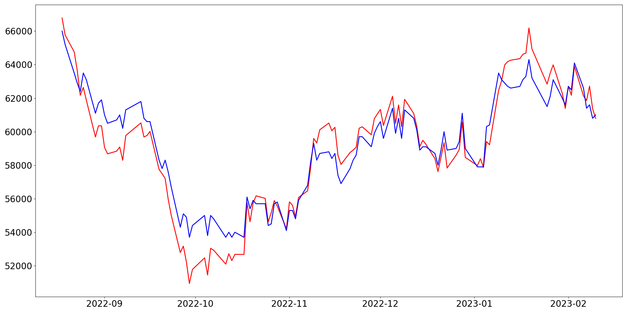 [ - : 실제값(종가) / - : 예측값(종가) ]