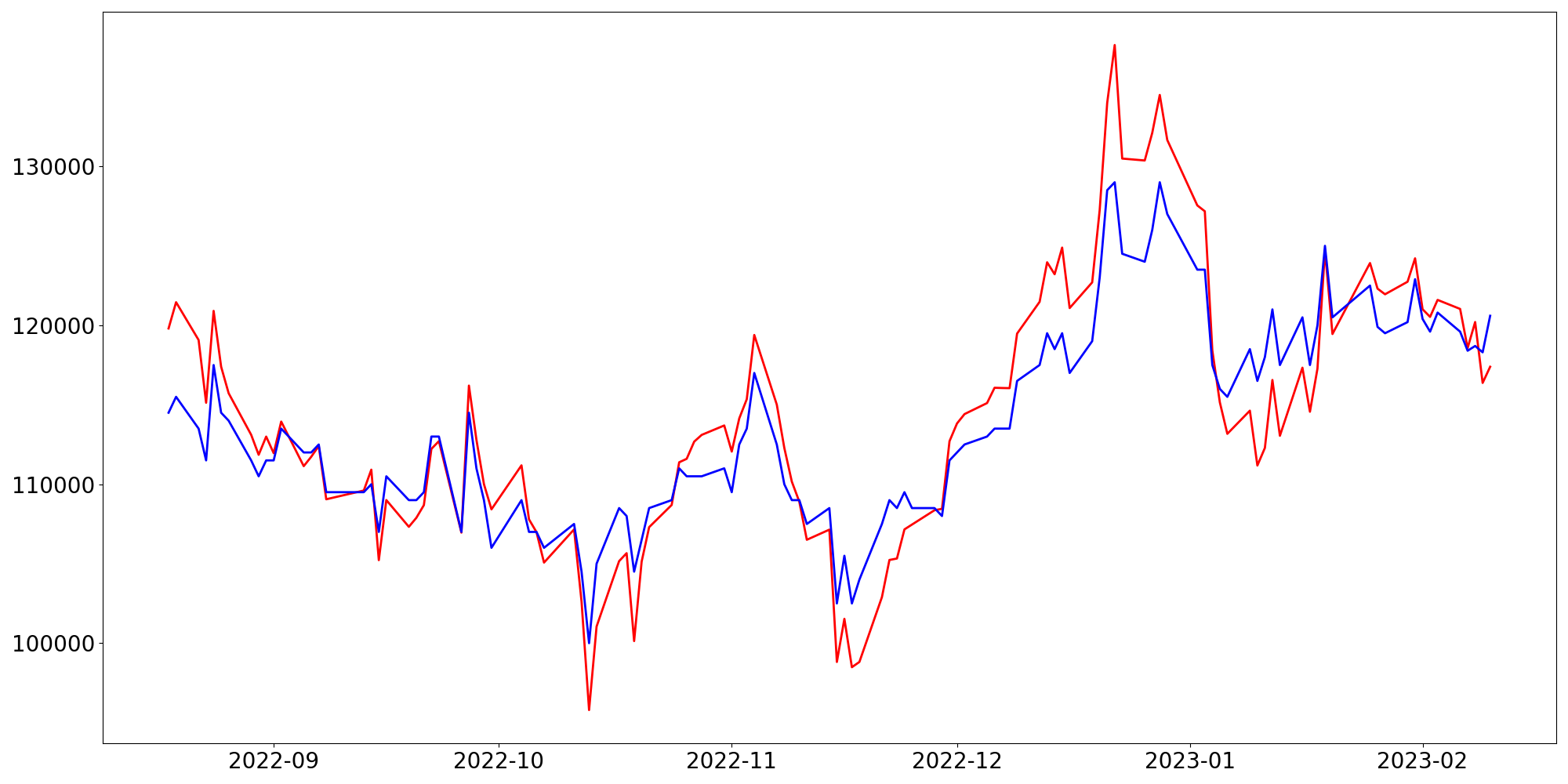 [ - : 실제값(종가) / - : 예측값(종가) ]