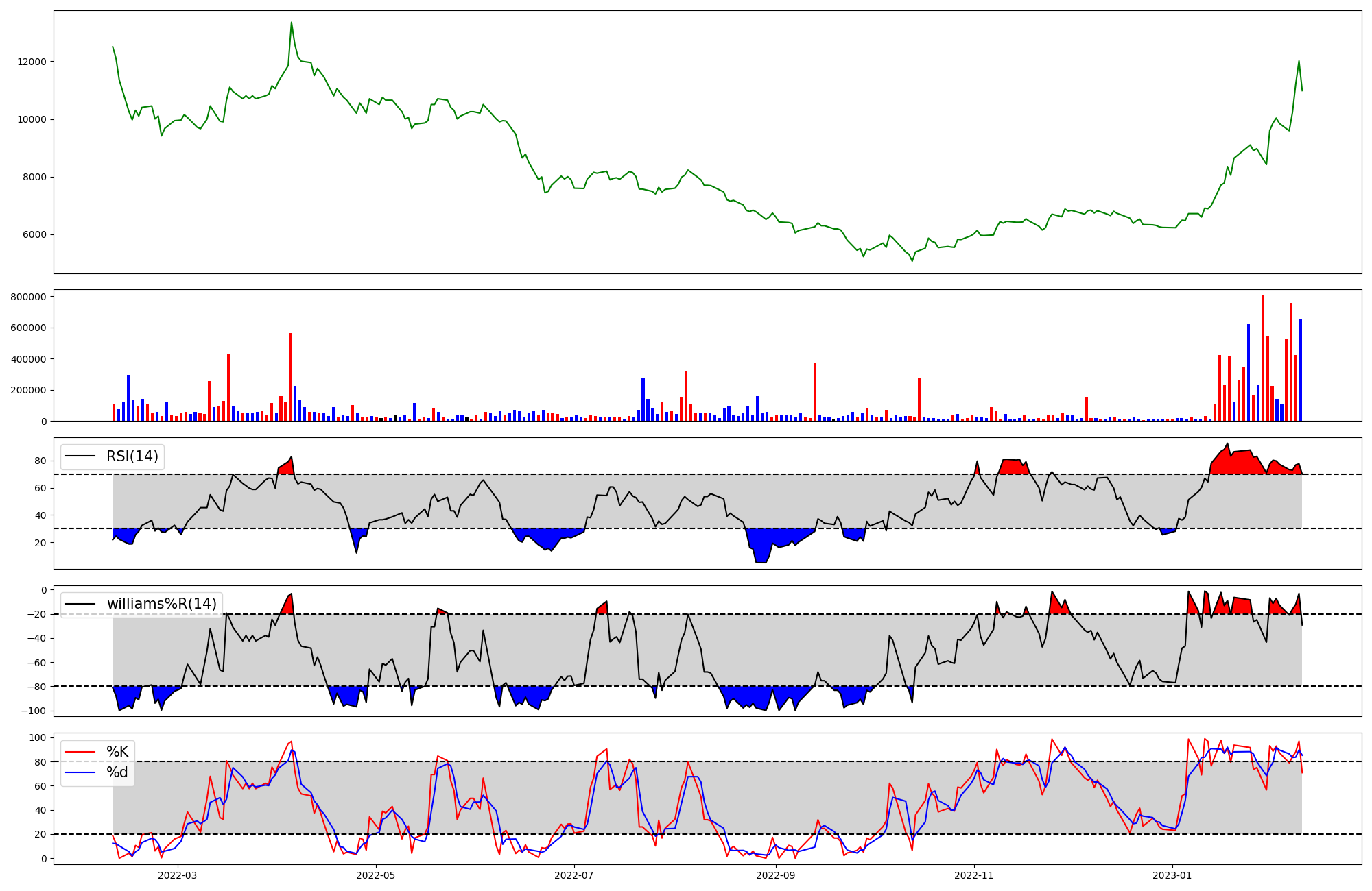 | RSI | Williams %R | stochastic(%K) | |
