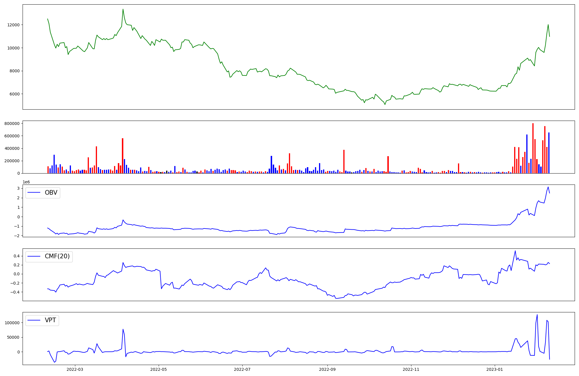 | OBV | CMF | VPT | |
