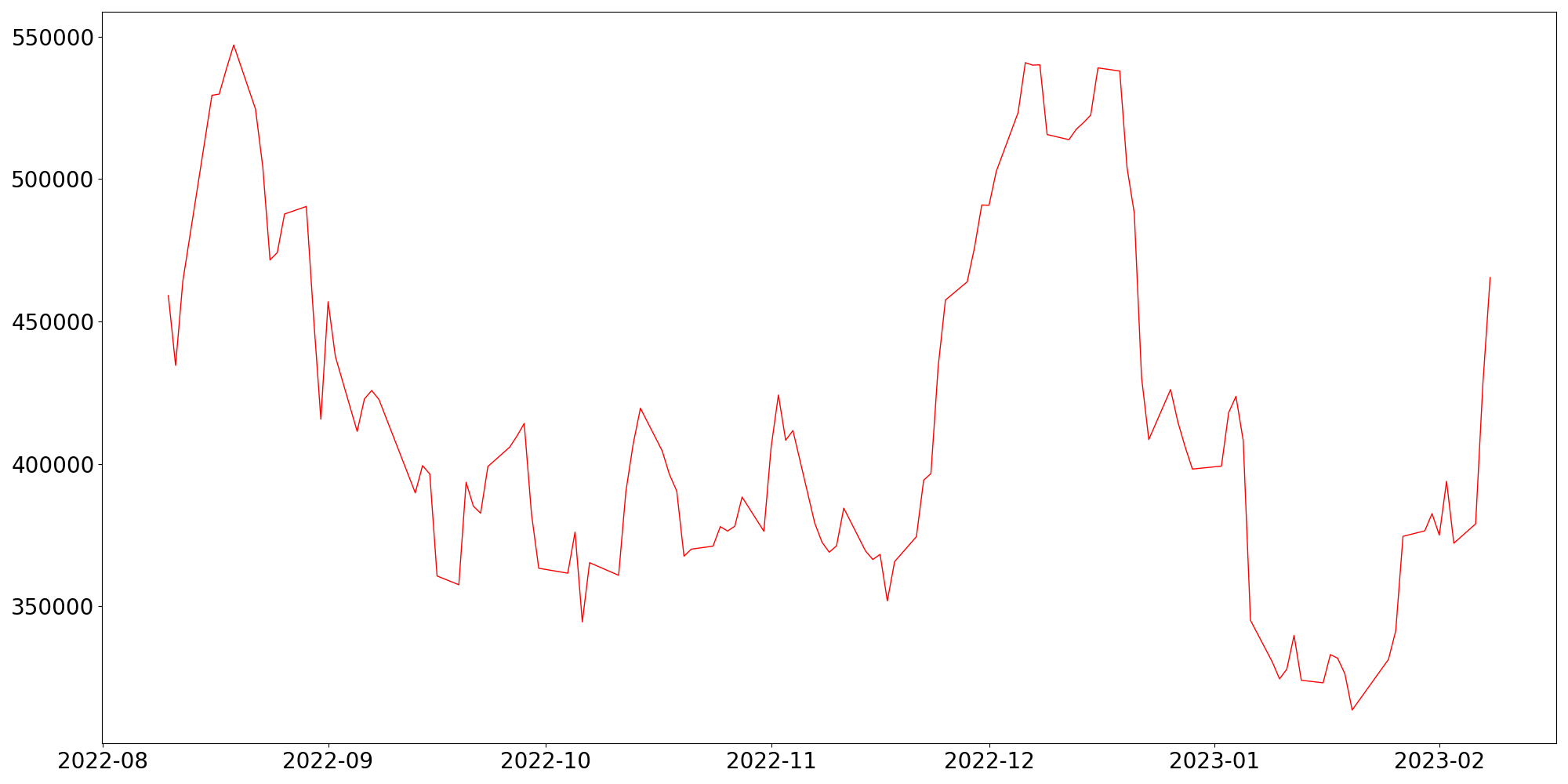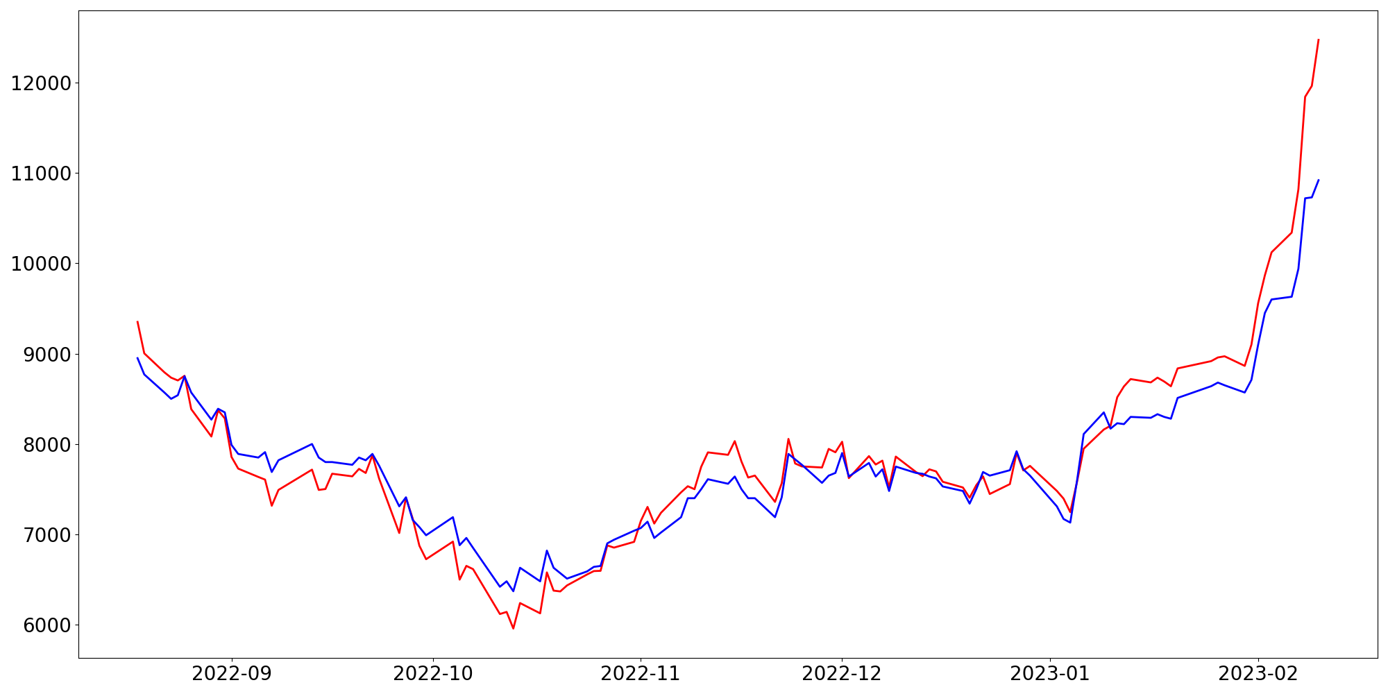 [ - : 실제값(종가) / - : 예측값(종가) ]