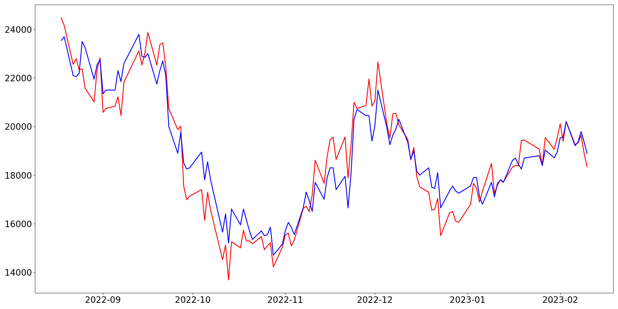 [ - : 실제값(종가) / - : 예측값(종가) ]