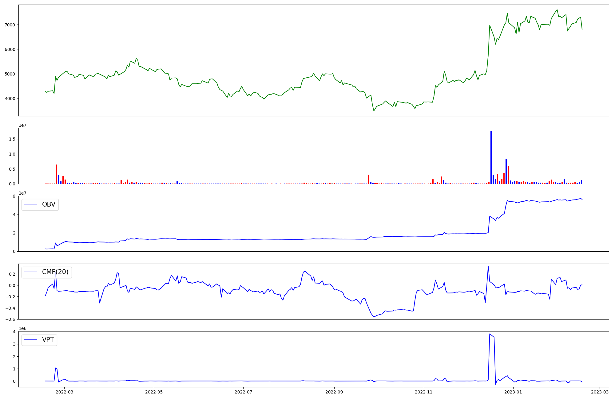 | OBV | CMF | VPT | |
