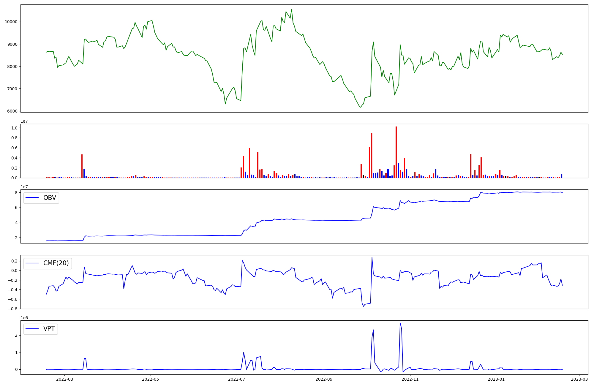| OBV | CMF | VPT | |