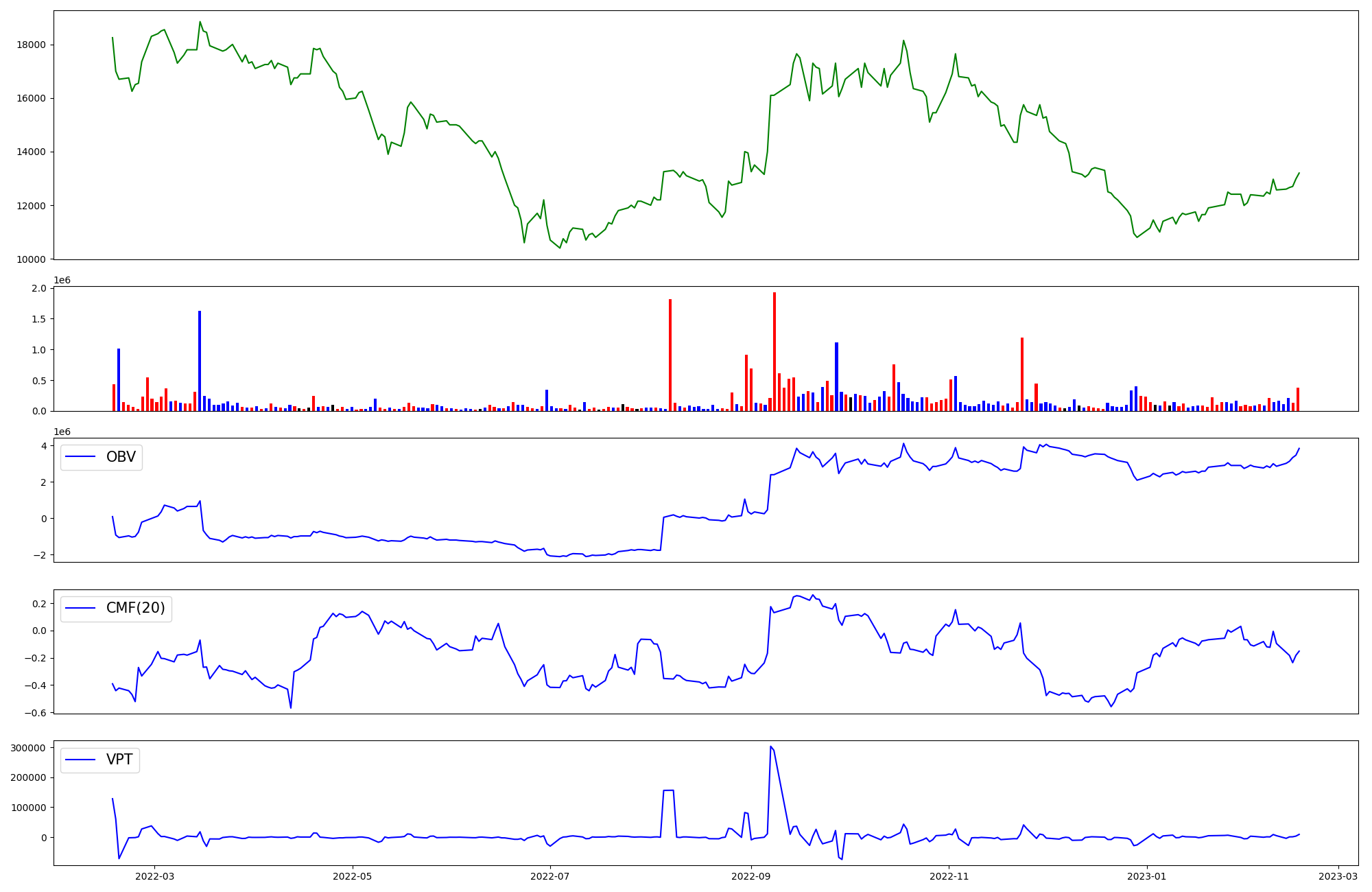 | OBV | CMF | VPT | |