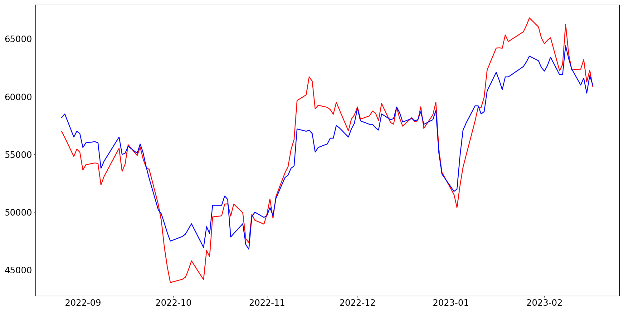 [ - : 실제값(종가) / - : 예측값(종가) ]
