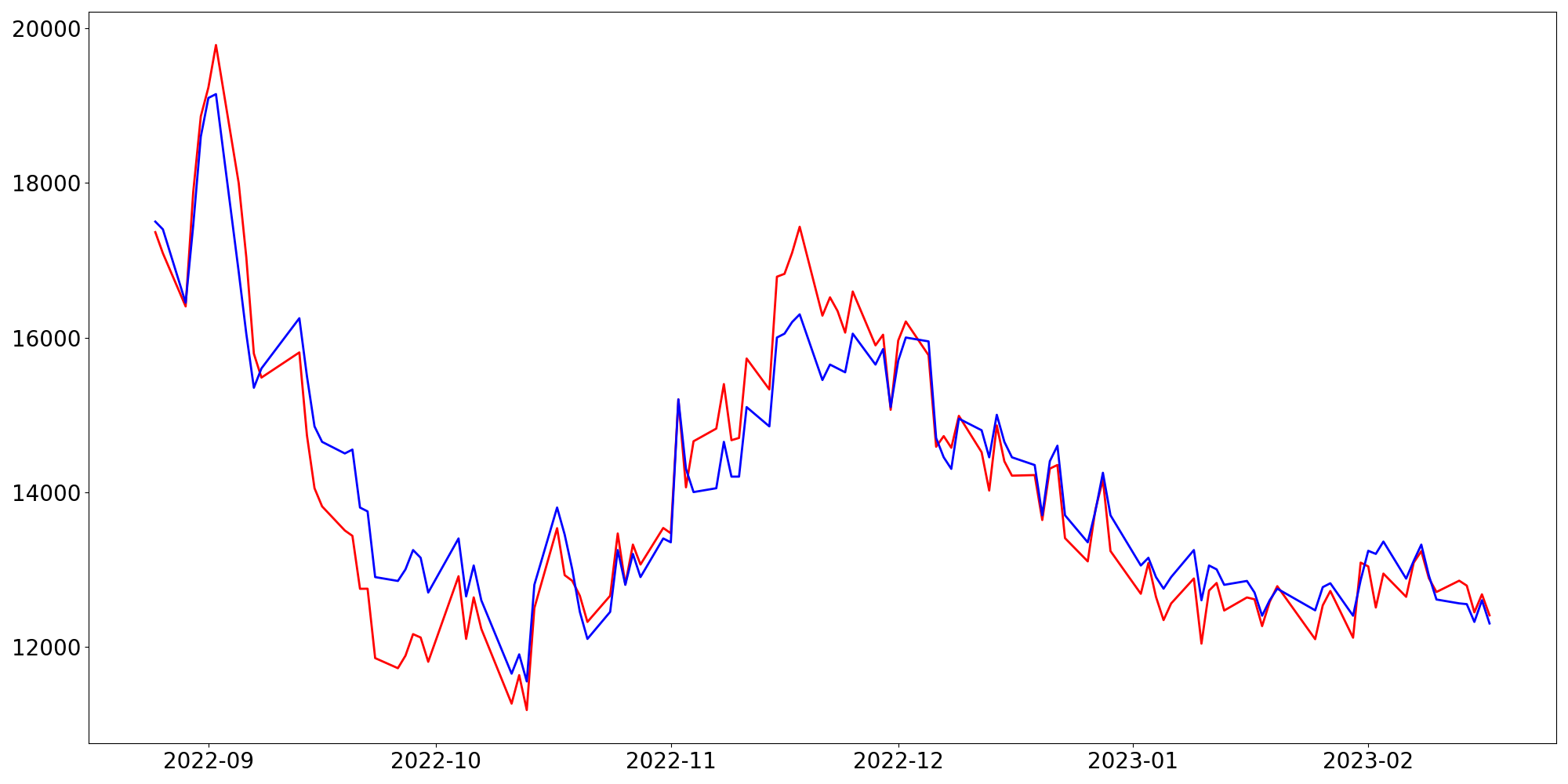 [ - : 실제값(종가) / - : 예측값(종가) ]