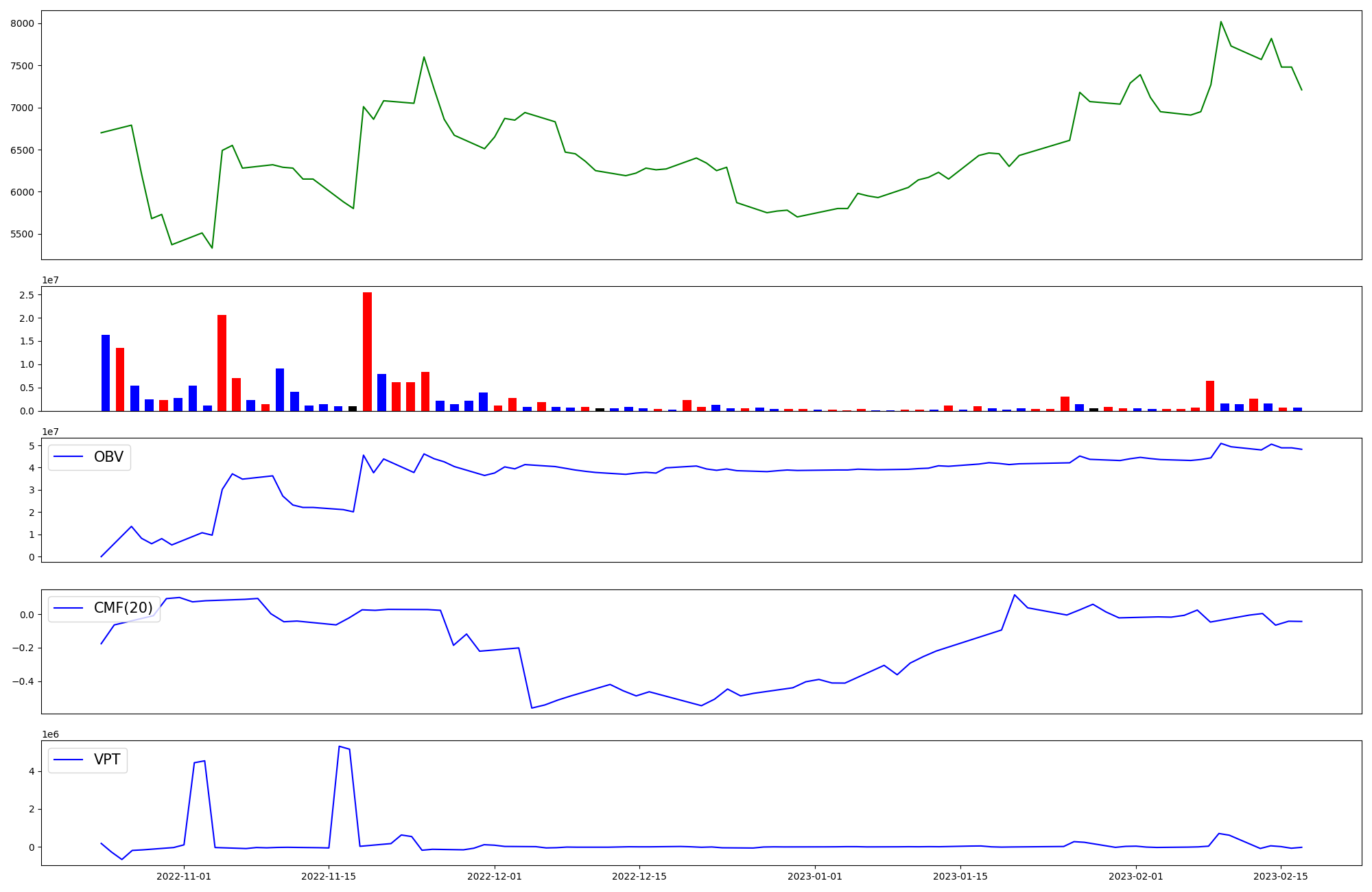 | OBV | CMF | VPT | |