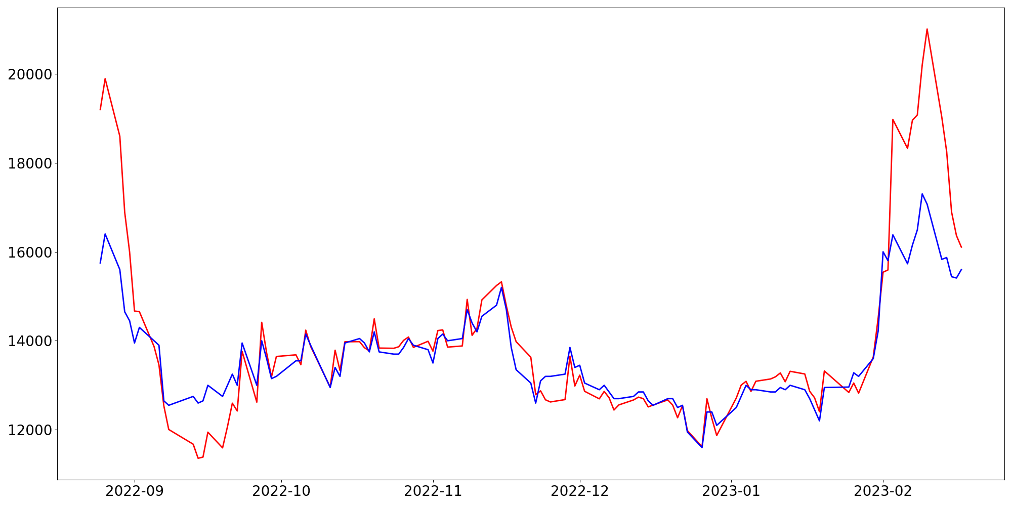 [ - : 실제값(종가) / - : 예측값(종가) ]