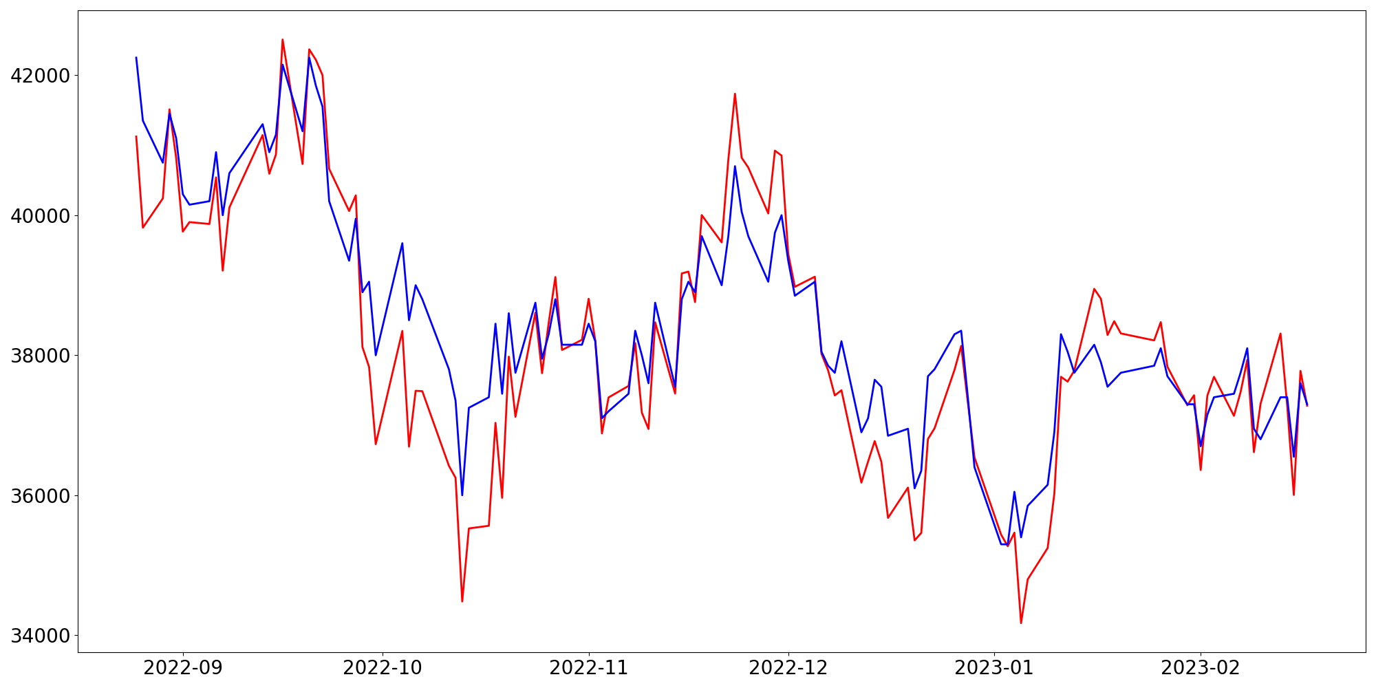 [ - : 실제값(종가) / - : 예측값(종가) ]