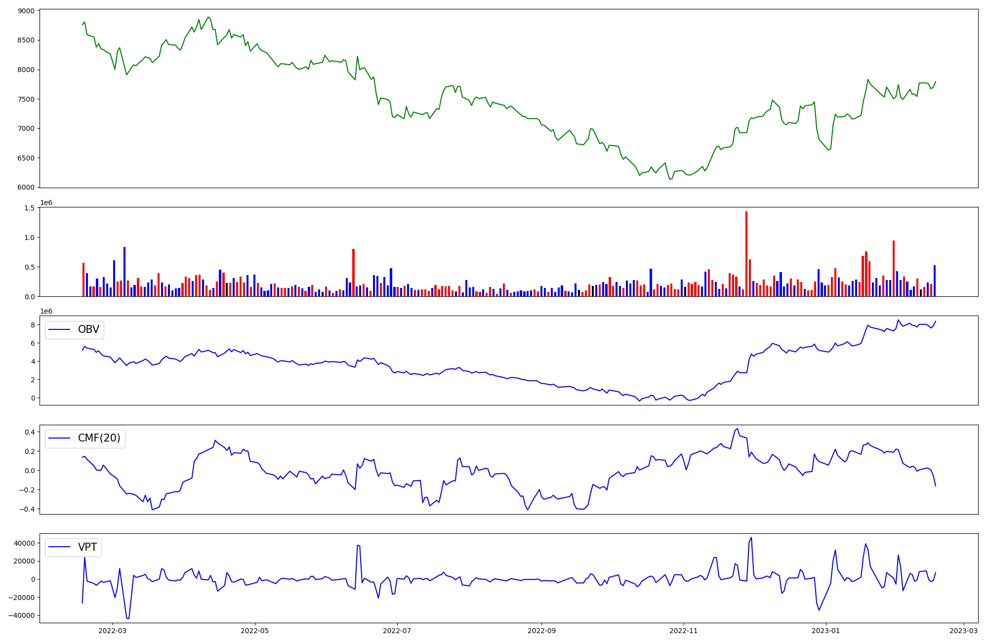 | OBV | CMF | VPT | |