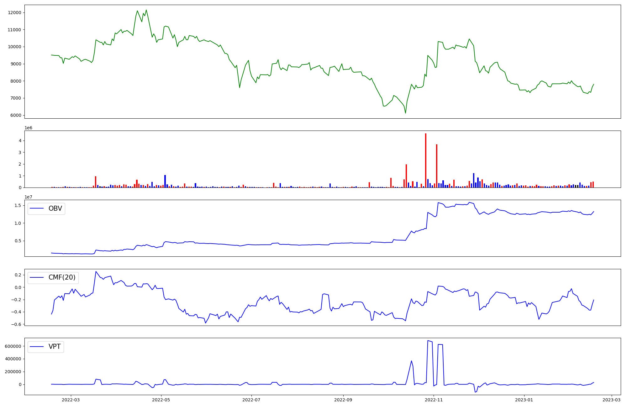 | OBV | CMF | VPT | |