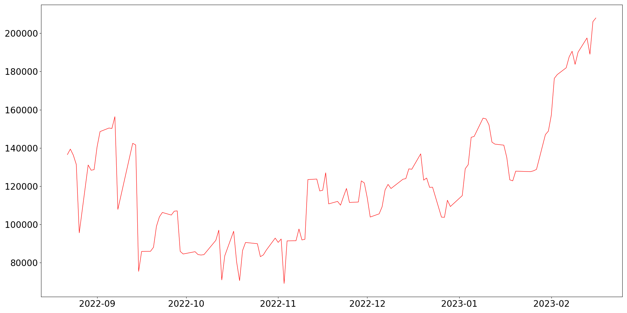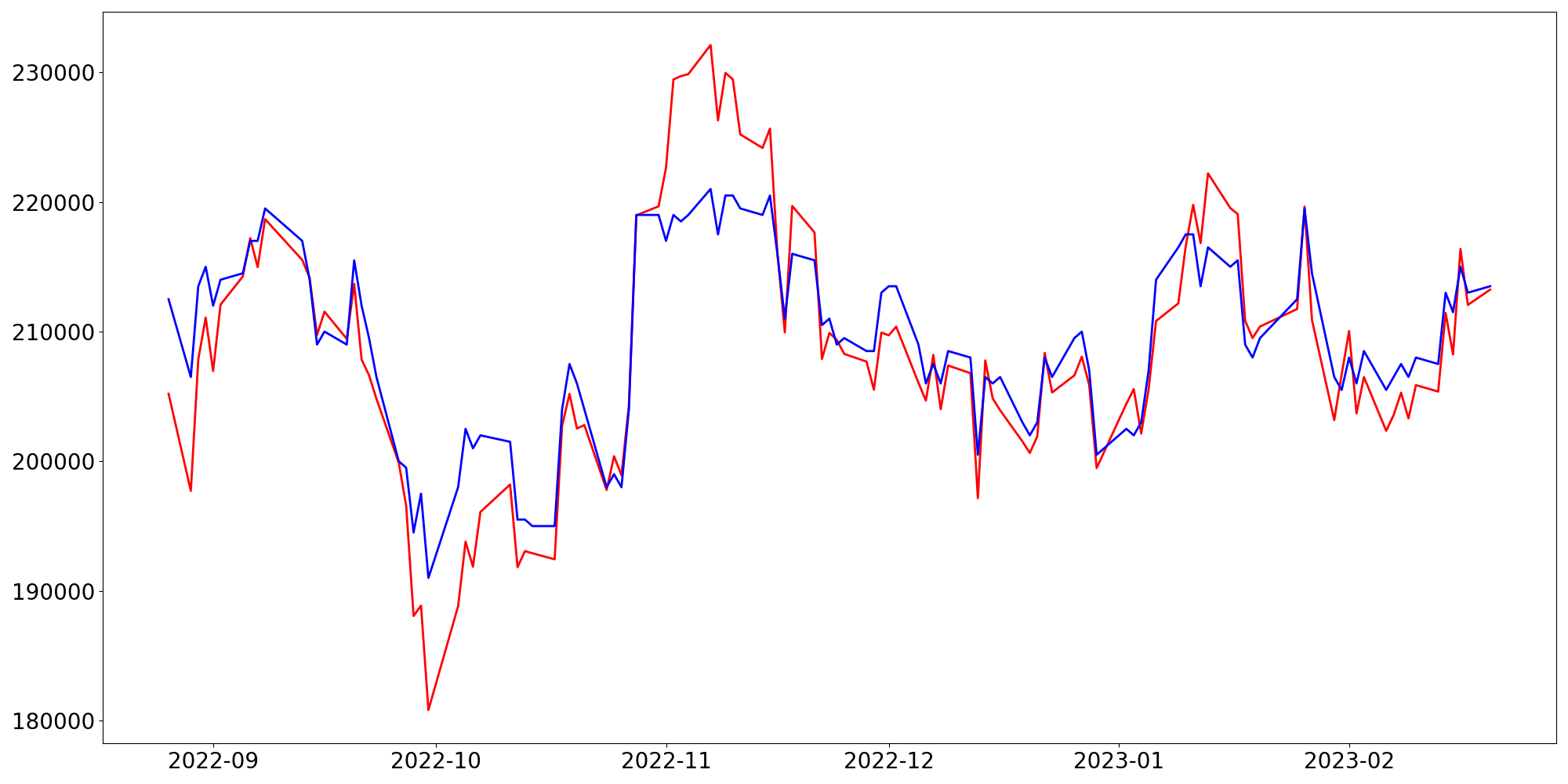 [ - : 실제값(종가) / - : 예측값(종가) ]