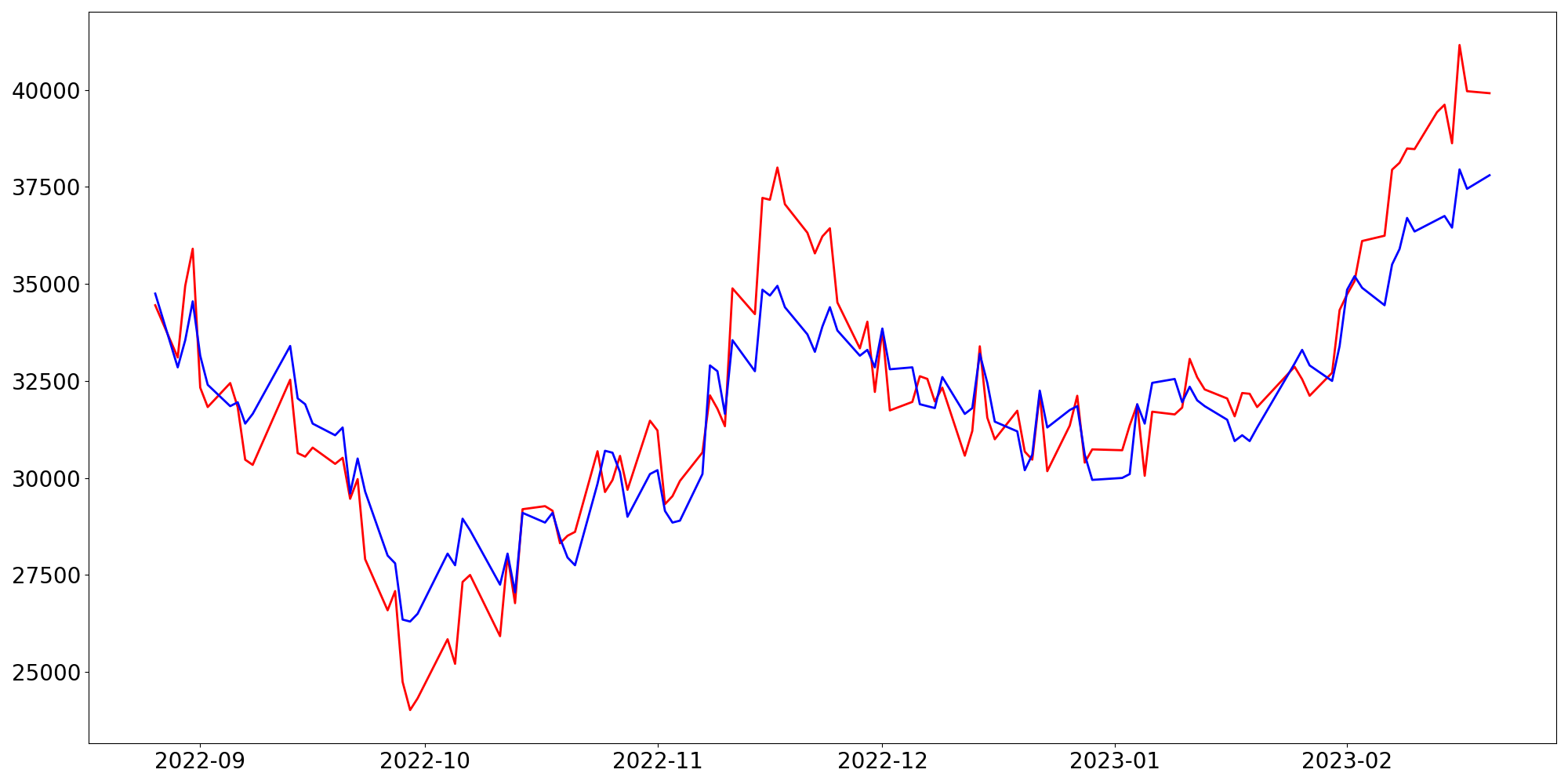 [ - : 실제값(종가) / - : 예측값(종가) ]