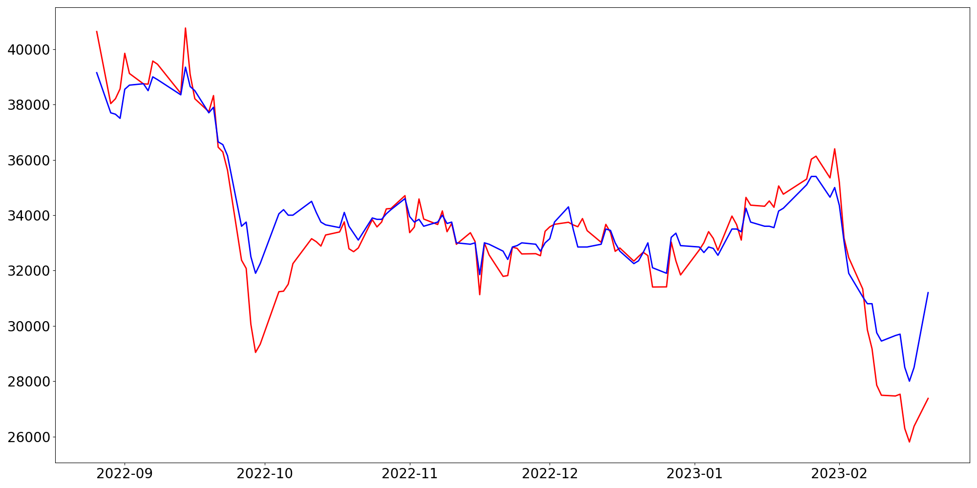 [ - : 실제값(종가) / - : 예측값(종가) ]