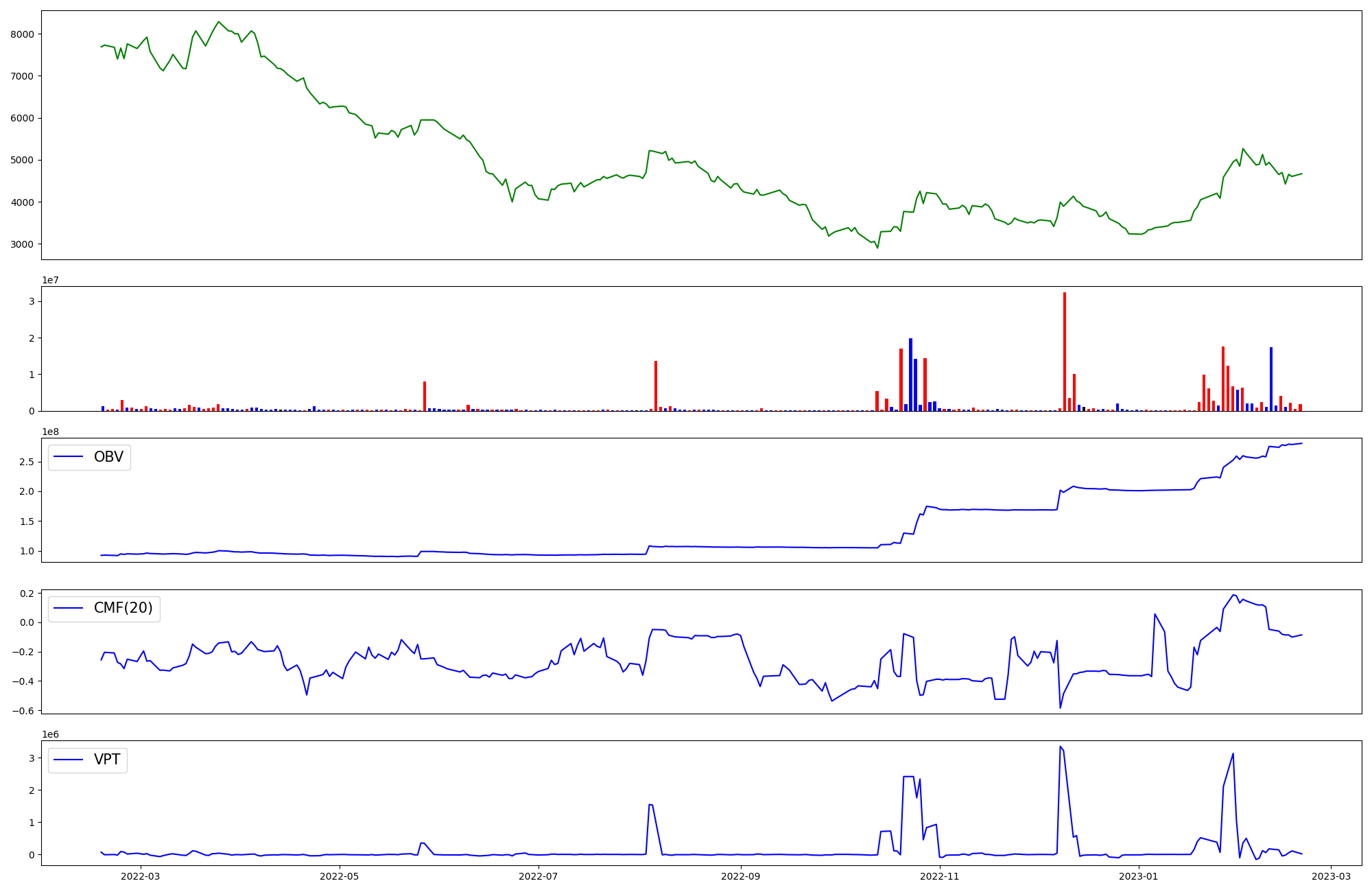 | OBV | CMF | VPT | |