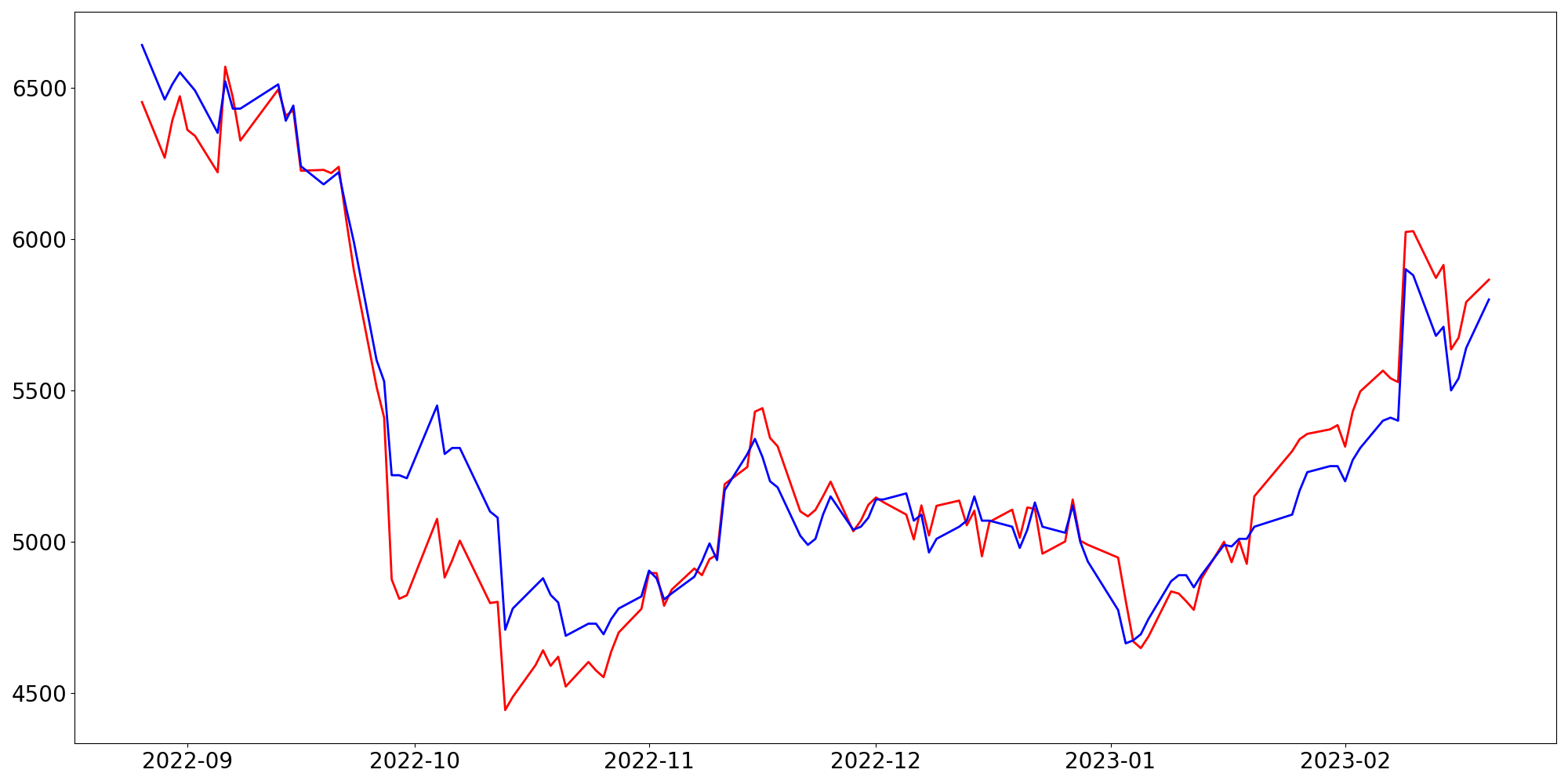 [ - : 실제값(종가) / - : 예측값(종가) ]