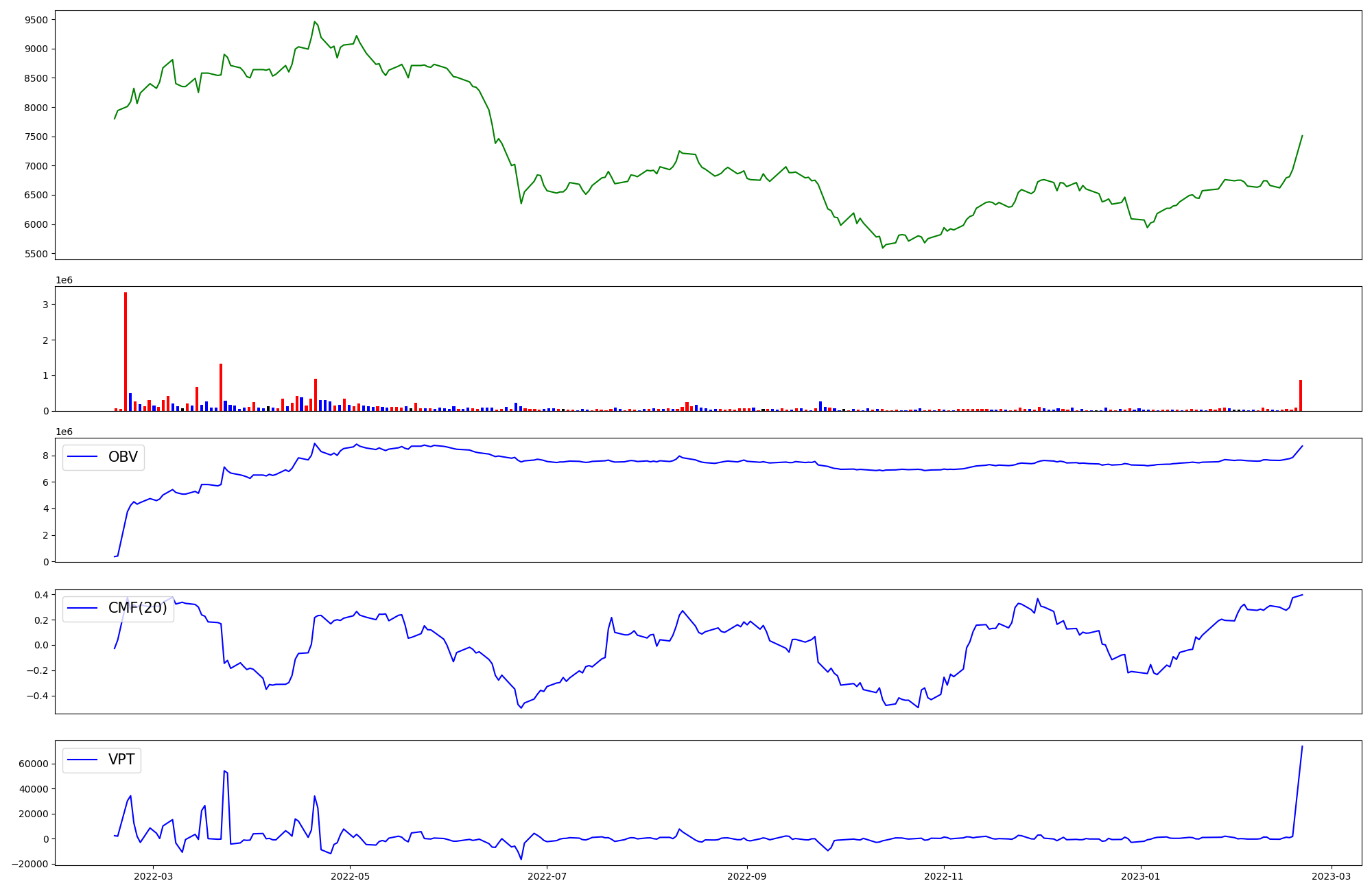 | OBV | CMF | VPT | |
