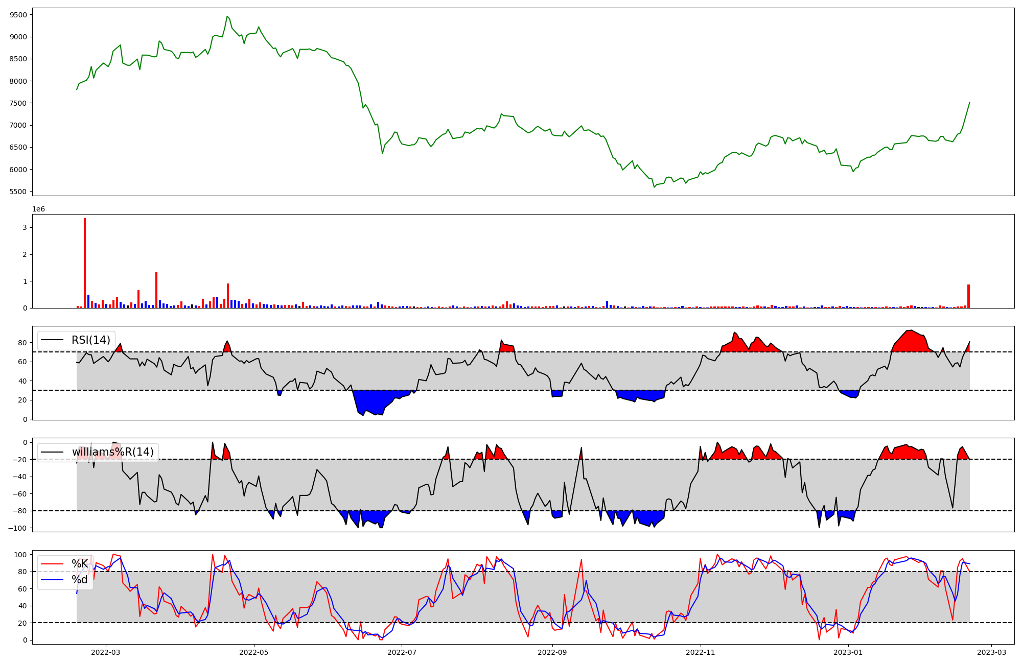 | RSI | Williams %R | stochastic(%K) | |