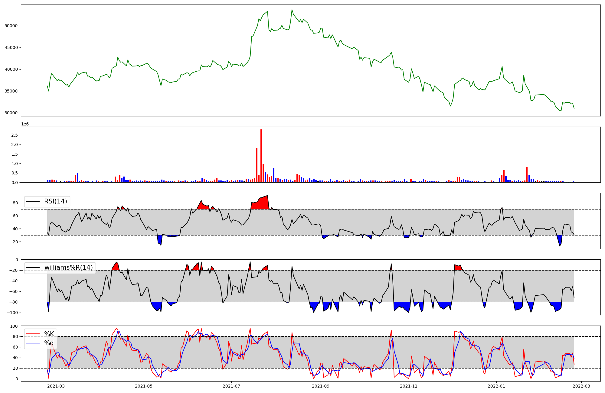 | RSI | Williams %R | stochastic(%K) | |