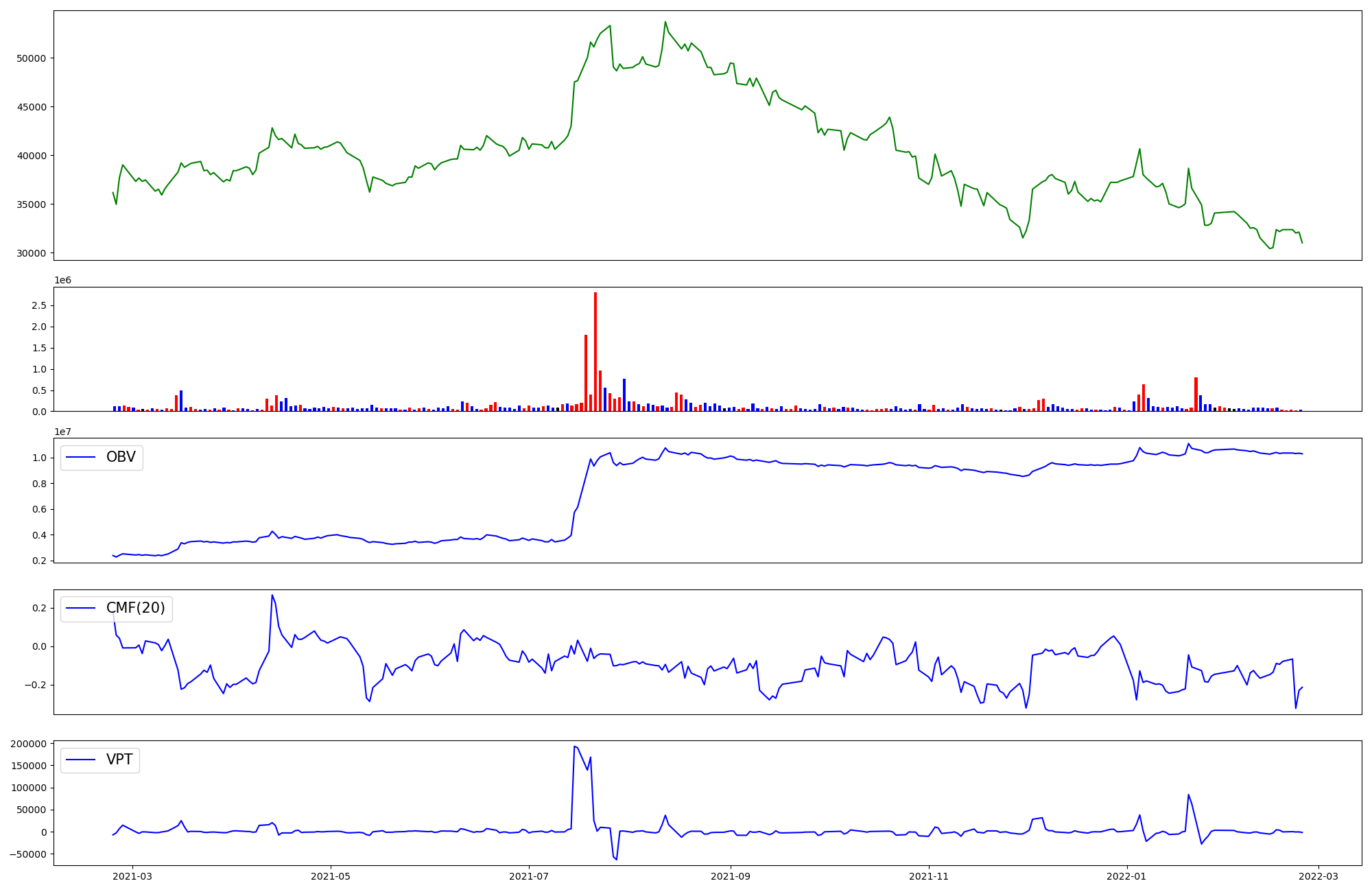 | OBV | CMF | VPT | |