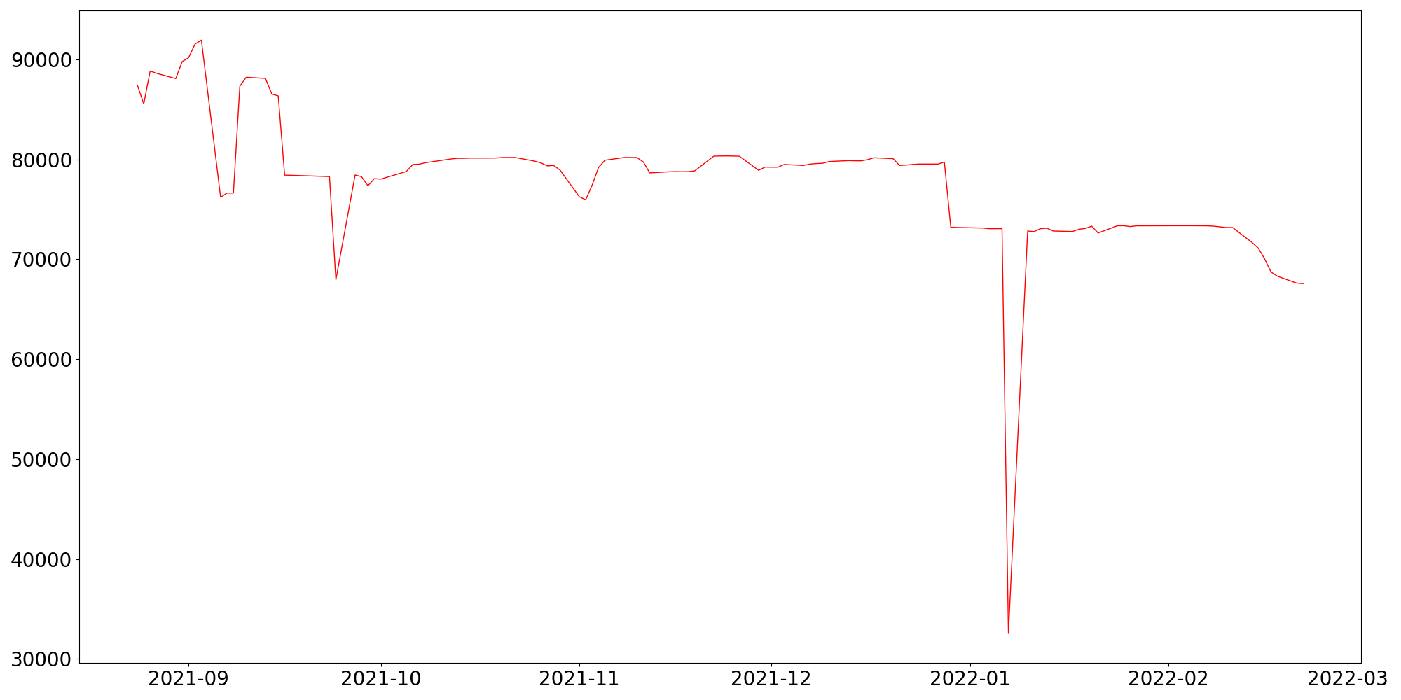 □ 오늘의 종가 : 31,000 (-1,100, -3.43%)