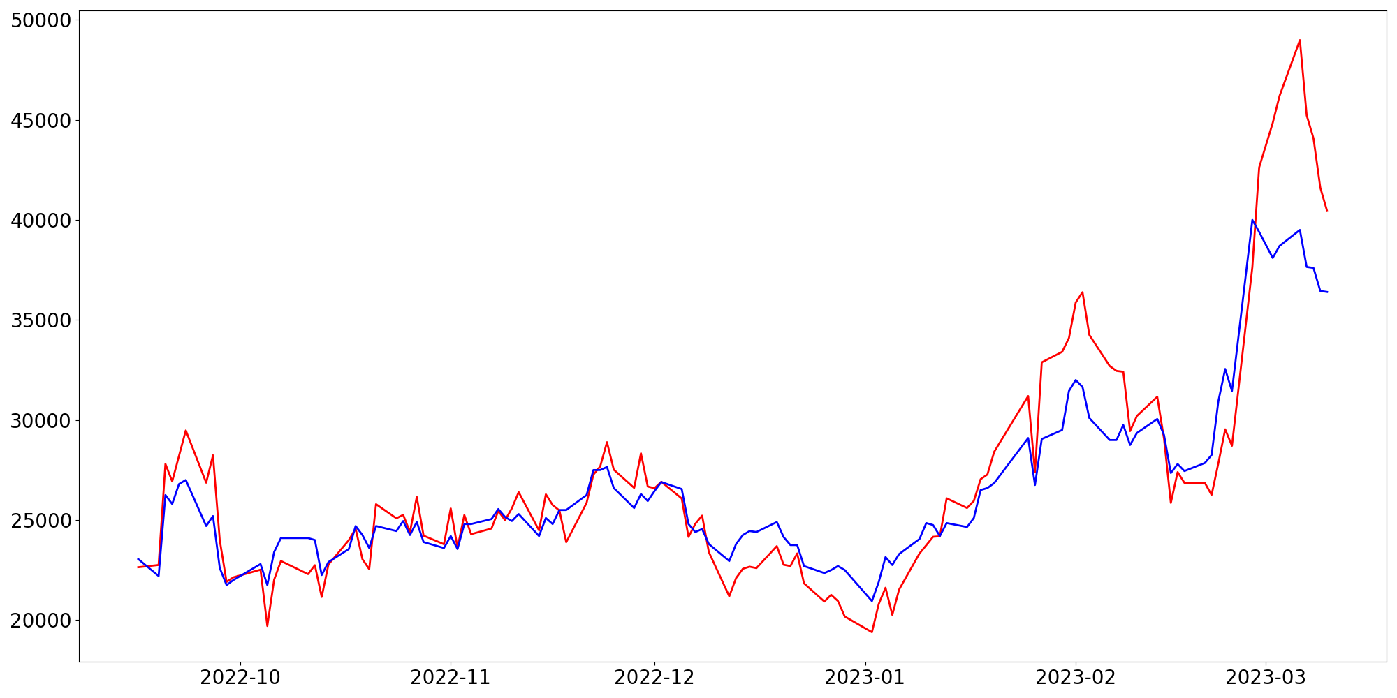 [ - : 실제값(종가) / - : 예측값(종가) ]