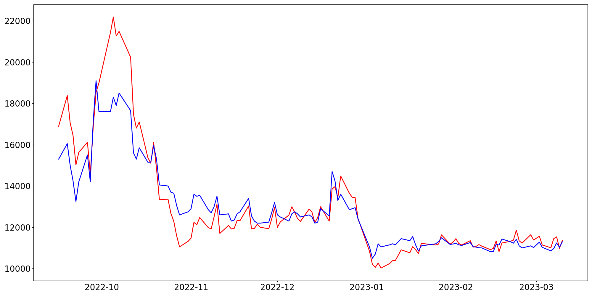 [ - : 실제값(종가) / - : 예측값(종가) ]