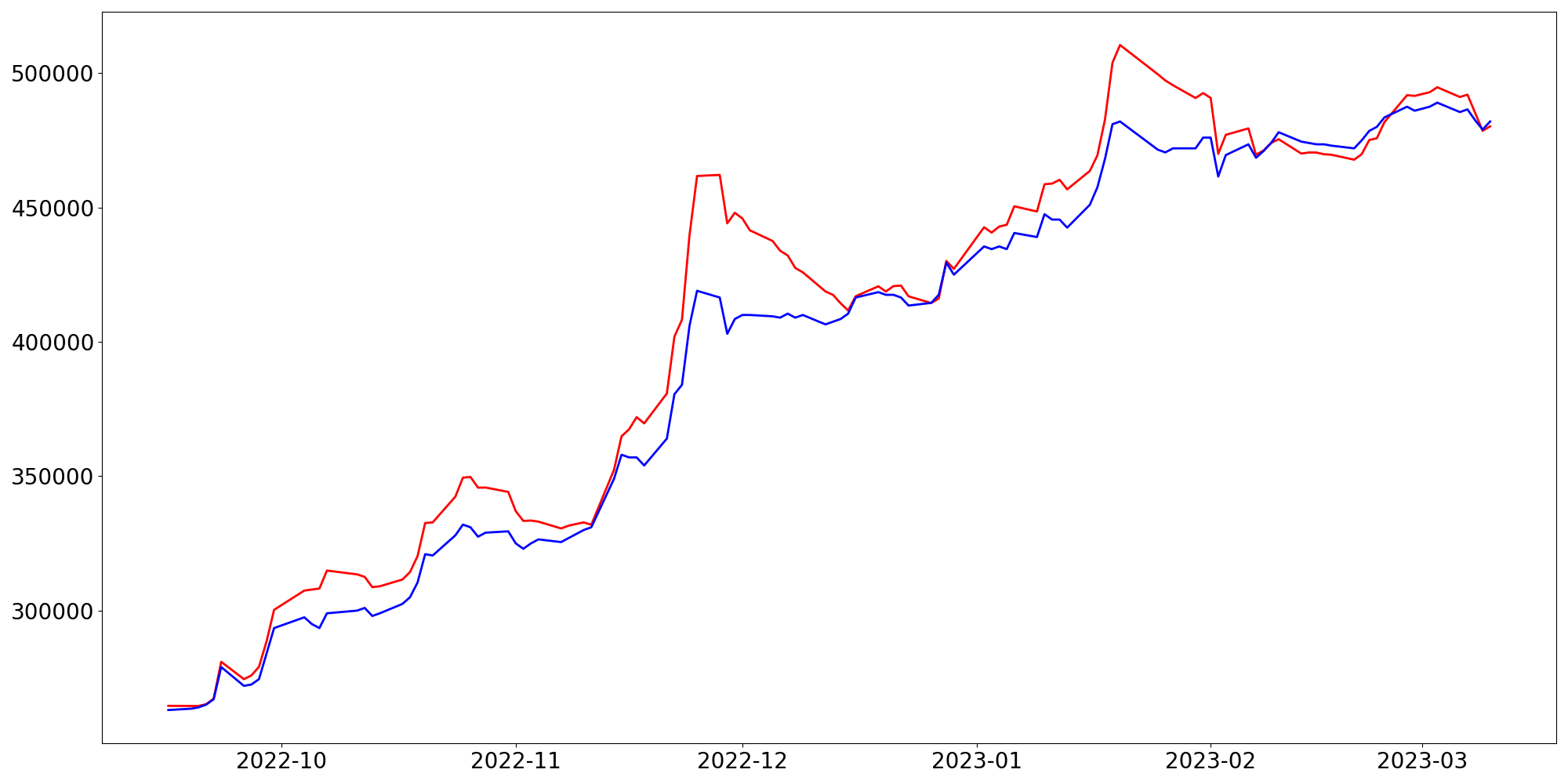 [ - : 실제값(종가) / - : 예측값(종가) ]