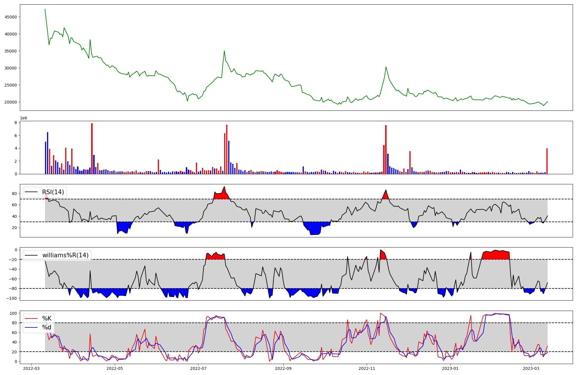 | RSI | Williams %R | stochastic(%K) | |