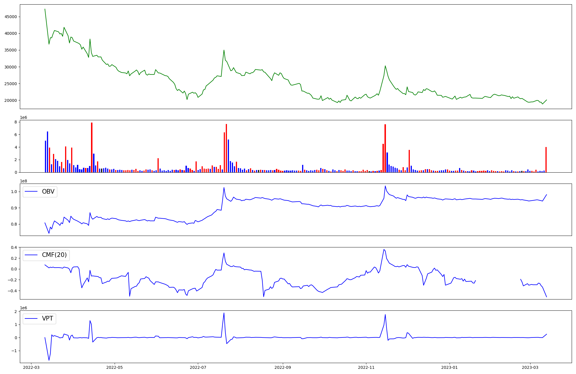 | OBV | CMF | VPT | |