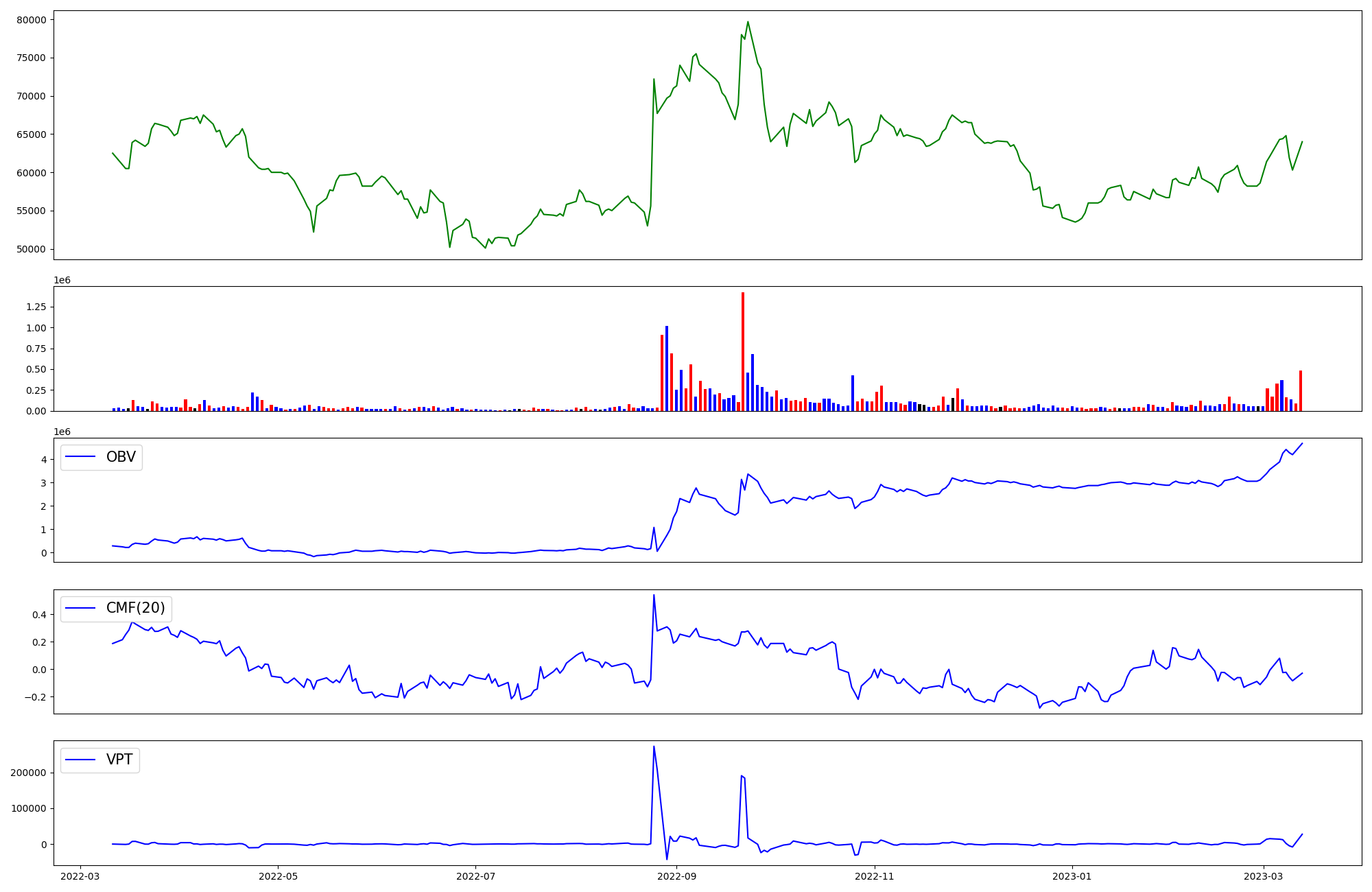 | OBV | CMF | VPT | |