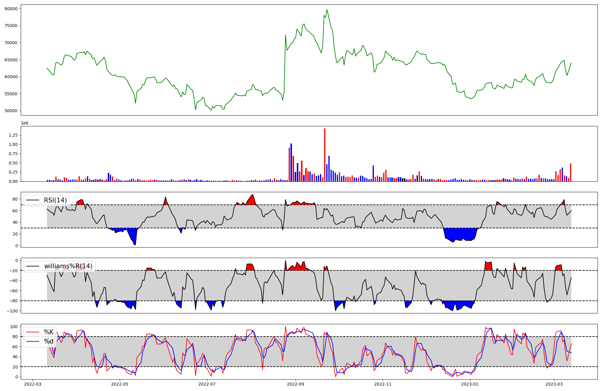 | RSI | Williams %R | stochastic(%K) | |
